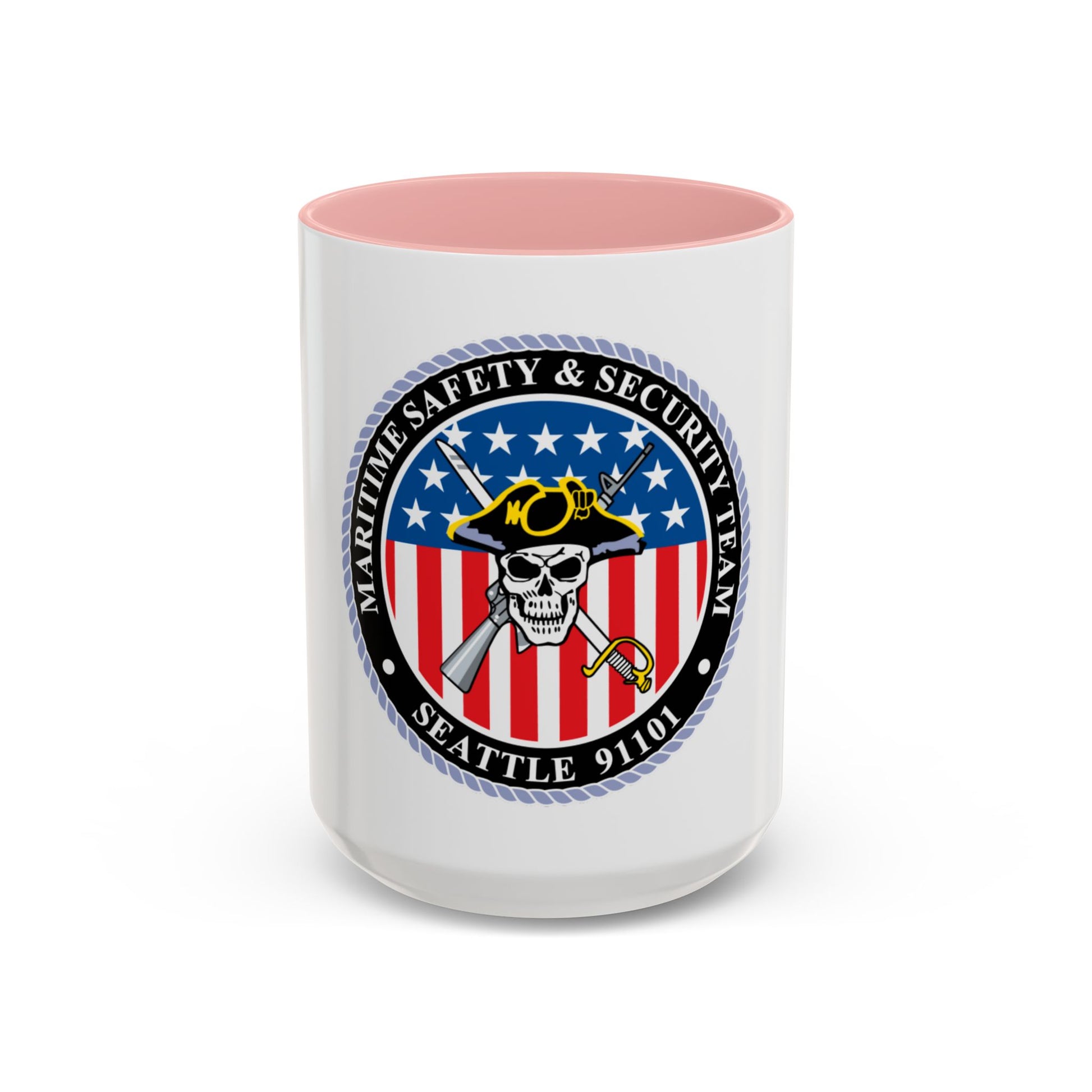 This coffee mug design celebrates the vital work of the Maritime Safety & Security Team Seattle (MSST Seattle), a specialized unit of the U.S. Coast Guard. The artwork embodies the team's core mission: protecting U.S. ports, waterways, and coastal regions.
