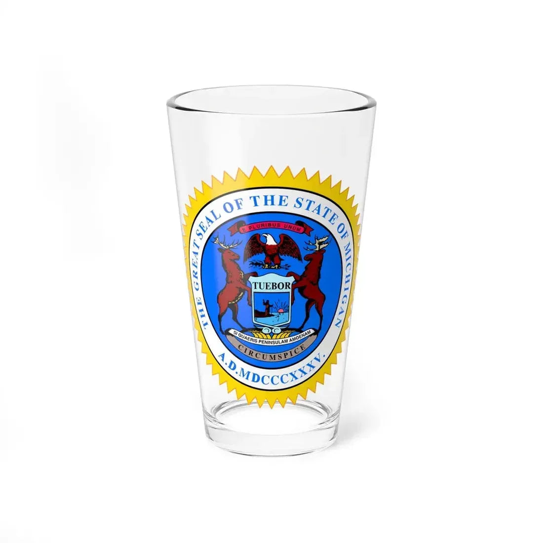 The Michigan State Seal is the official emblem of the U.S. state of Michigan. It has been in use since 1865, reflecting the rich history and unique characteristics of the state. The seal design features a female figure, personifying the personification of the Great Lakes region, holding a shield with three sheaves of wheat and an olive branch, symbolizing peace, prosperity, and cooperation. Beneath her feet lies a beaver, representing hard work and resourcefulness, while above her is a moose's head, signifying strength and courage. Surrounding the scene are the words "Great Seal of the State of Michigan" inscribed at the top and "E Pluribus Unum," the national motto, along with the year 1835 (the year Michigan was admitted into the Union), at the bottom. The Michigan State Seal serves as a symbol of pride for its citizens and a visual representation of the state's heritage and values.