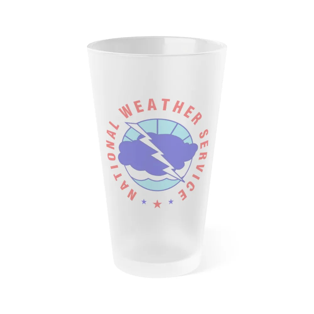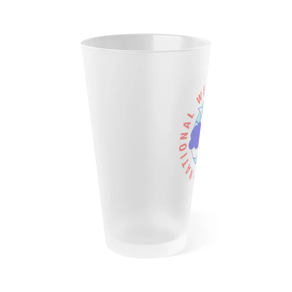 Frosted pint glass (16 oz / ≈0.47 L) with a soft matte finish and semi-translucent, one-sided print. Tough enough for bar and restaurant use, dishwasher safe, and BPA-free — a modern take on classic pintware.