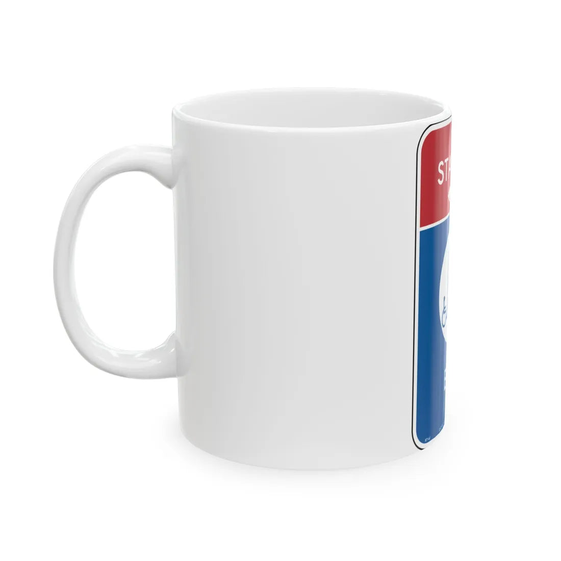 Sturdy white ceramic mugs available in 11 oz (≈330 ml) and 15 oz (≈440 ml), with a glossy finish and comfortable C-handle — microwave and dishwasher safe, and made from lead- and BPA-free materials.