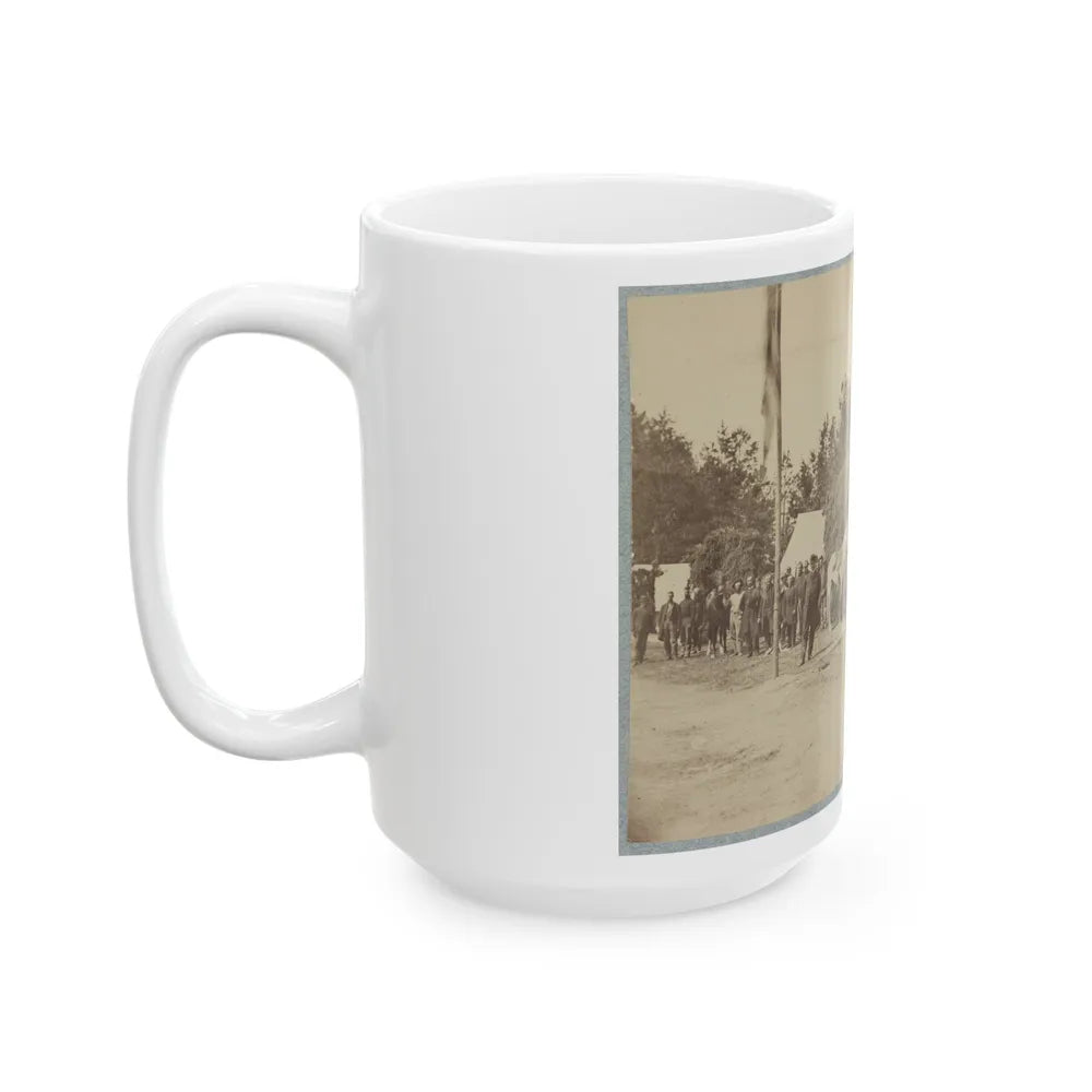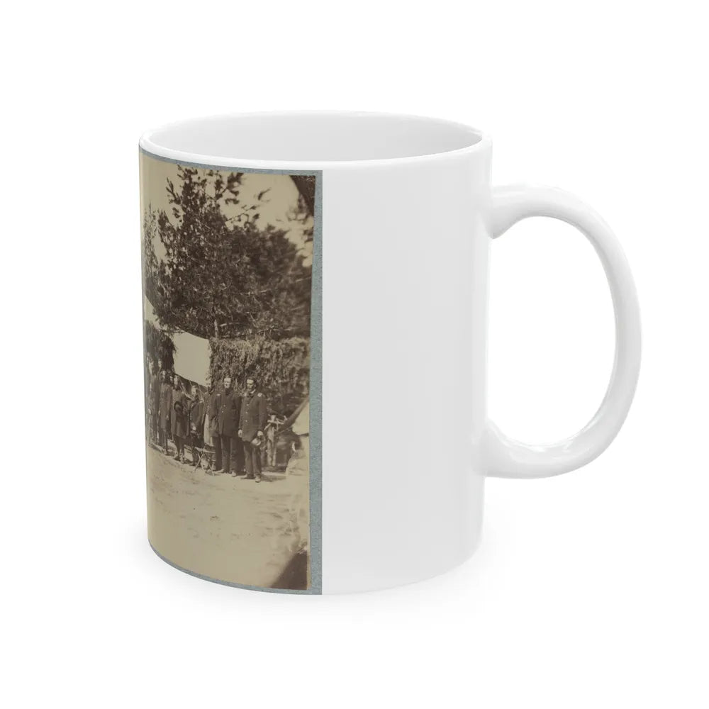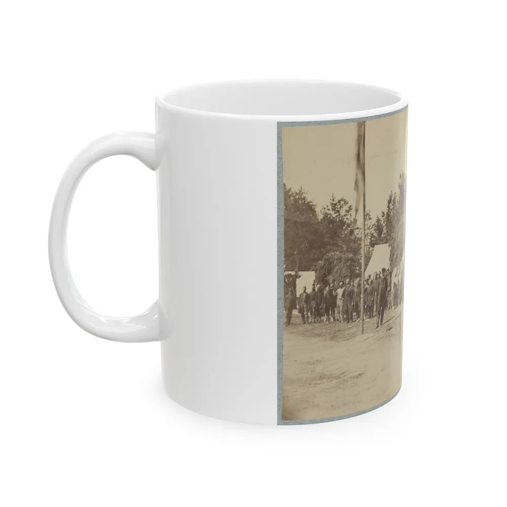 Officers Stand In Line By A Flagpole (U.S. Civil War) White Coffee Mug