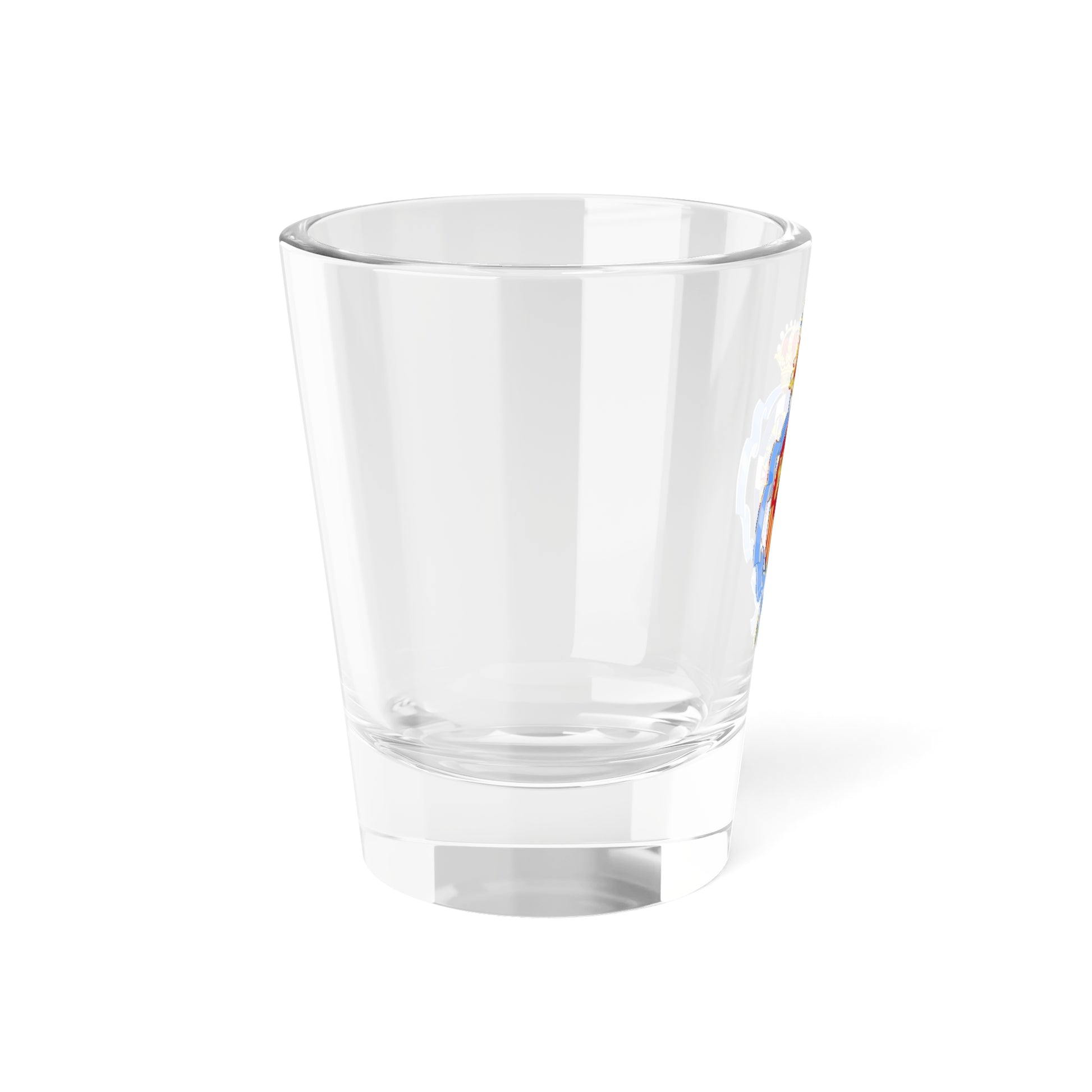This shot glass showcases the regal personal coat of arms of Her Majesty, Queen Sofía of Spain, as associated with the prestigious Order of Charles III. The design is a powerful visual statement of her royal lineage and honors.