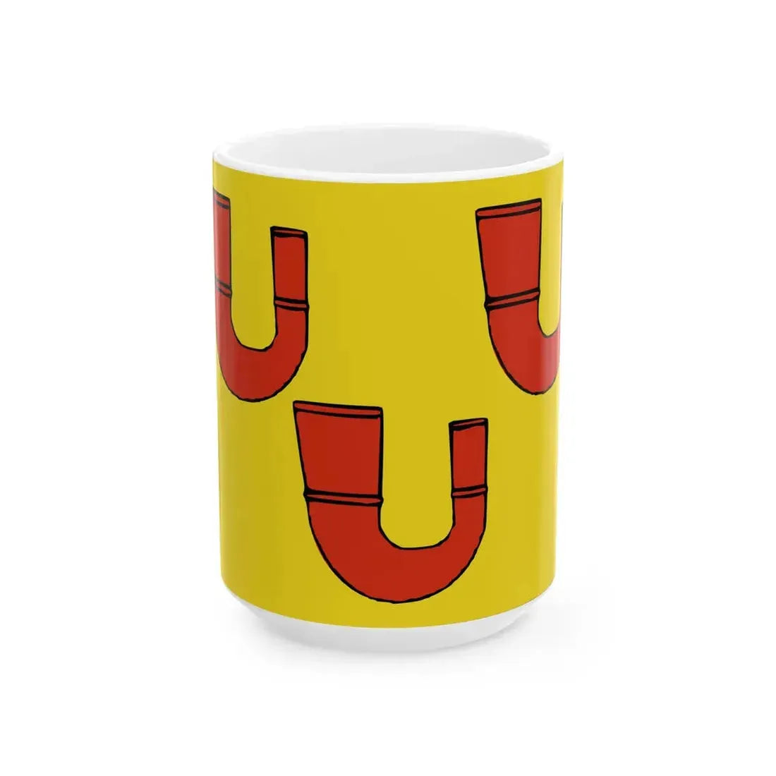 Sturdy white ceramic mugs available in 11 oz (≈330 ml) and 15 oz (≈440 ml), with a glossy finish and comfortable C-handle — microwave and dishwasher safe, and made from lead- and BPA-free materials.