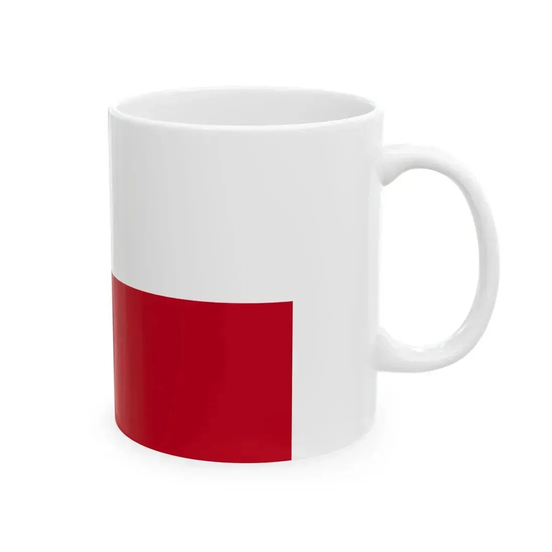 Sturdy white ceramic mugs available in 11 oz (≈330 ml) and 15 oz (≈440 ml), with a glossy finish and comfortable C-handle — microwave and dishwasher safe, and made from lead- and BPA-free materials.