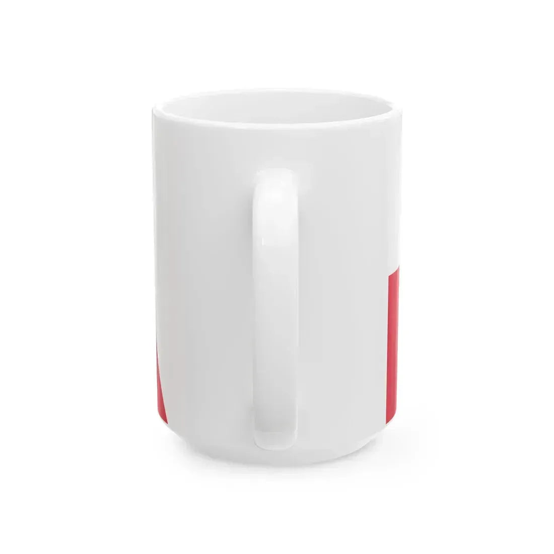 Sturdy white ceramic mugs available in 11 oz (≈330 ml) and 15 oz (≈440 ml), with a glossy finish and comfortable C-handle — microwave and dishwasher safe, and made from lead- and BPA-free materials.