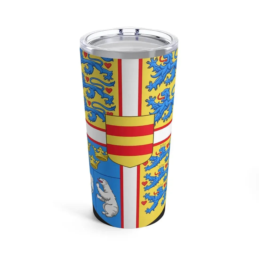 Royal Arms of Denmark The Royal Arms of Denmark is the official heraldic symbol representing the Kingdom of Denmark. The design features three gold lions passant guardant on a red field, each crowned with a royal crown, and surrounded by a belt adorned with alternating green and white Scandinavian crosses. The origins of the Danish Royal Arms can be traced back to the 12th century when it was first used as a personal coat of arms by King Valdemar I. Over the centuries, the design has undergone minor modifications, but its essential elements have remained unchanged. The three lions symbolize the Danish monarchy's connection to England, as they were originally part of the English Royal Arms. However, in Denmark, the lions are portrayed passant guardant, meaning walking and looking back over their shoulders, a distinctive feature that sets them apart from the traditional English design. The green and white Scandinavian crosses, known as Dannebrog (Danish for 'Danish cloth'), have been a prominent part of the Danish identity since they first appeared in the 13th century. They symbolize the Christian faith and serve as a reminder of the Danish victory at the Battle of Lyndanisse in 1219, where it is said that the crosses miraculously fell from the sky. Today, the Royal Arms can be found on various official documents, buildings, and items related to the Danish monarchy. It serves as a potent symbol of Denmark's rich history, traditions, and national identity.
