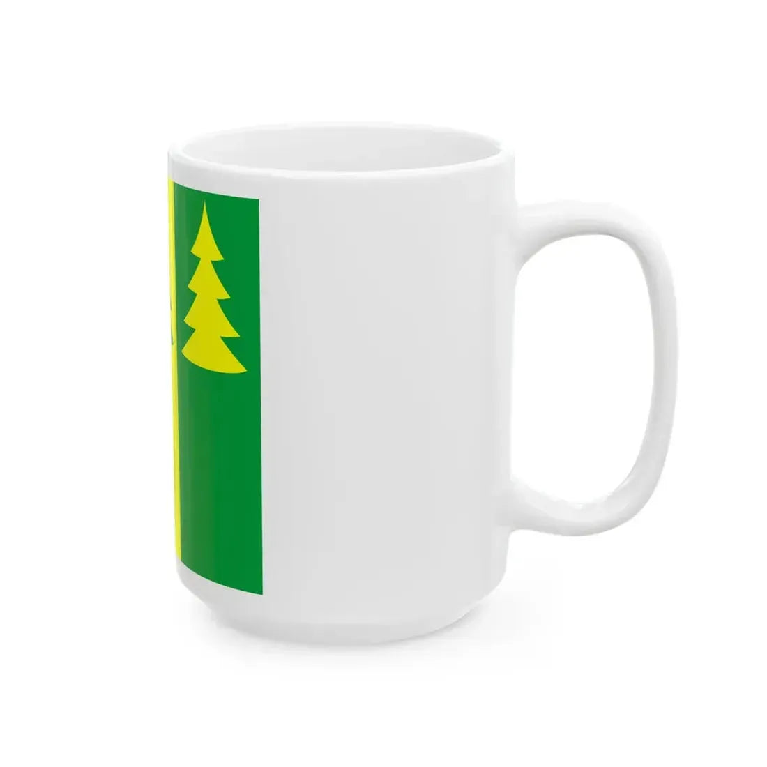 Sturdy white ceramic mugs available in 11 oz (≈330 ml) and 15 oz (≈440 ml), with a glossy finish and comfortable C-handle — microwave and dishwasher safe, and made from lead- and BPA-free materials.