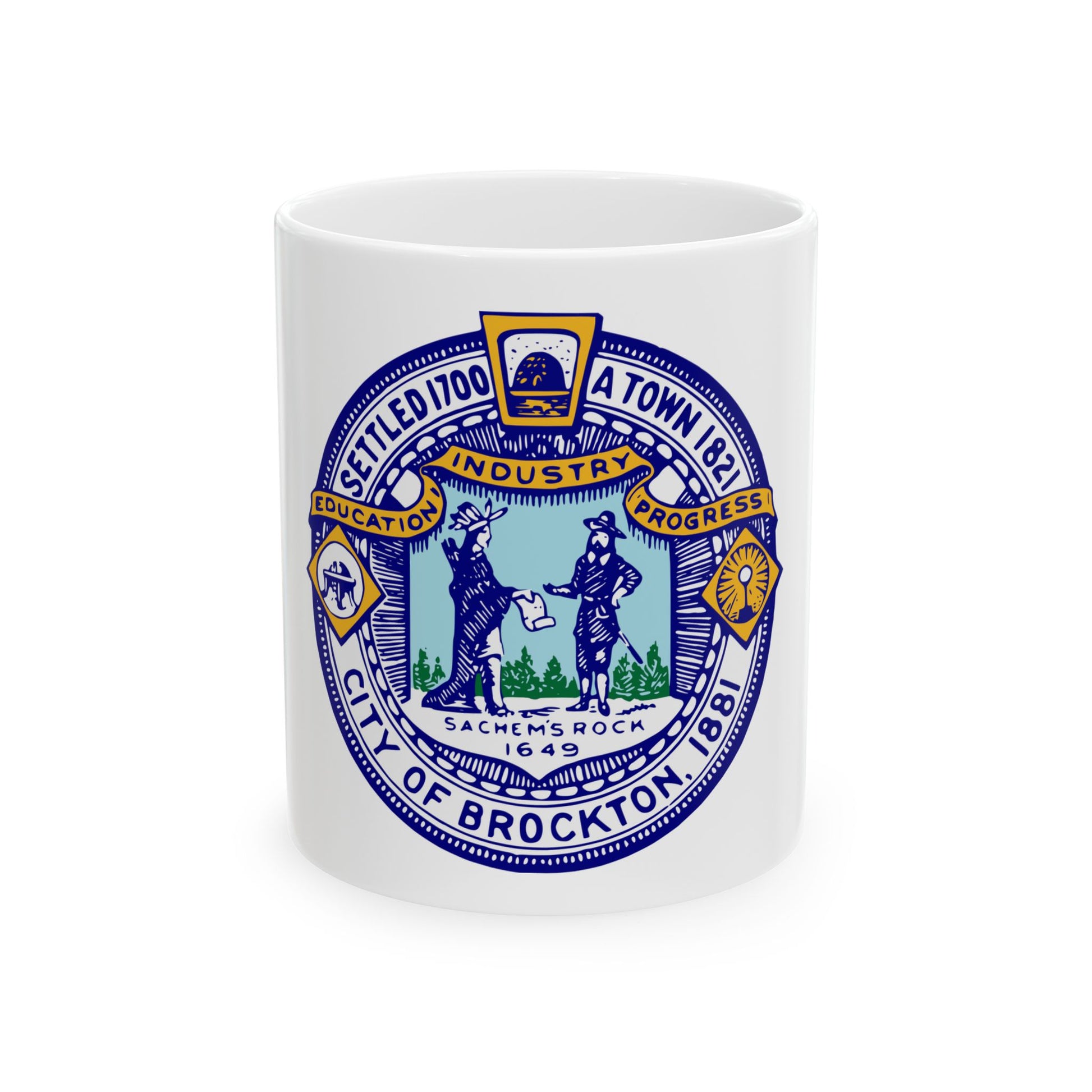 The Seal of Brockton Massachusetts is a heraldic emblem that symbolically represents the city's history, values, and identity. The design typically includes an image of a coiled snake, signifying wisdom, with its tail in its mouth, which is a universal symbol for eternity. The shield, on which this image appears, often bears three stars representing the original three villages amalgamated to form Brockton: Brockton Center, North Brockton, and West Bridgewater. The crest above the shield may feature a helmet, a mural crown, or a torse (a wreath made of two colors in alternating vertical stripes). The motto "By the Hand of the Industrious" is often included in the design to reflect Brockton's reputation as a center for manufacturing and hard work. This emblem serves as an important symbol for civic pride within the city of Brockton, Massachusetts.