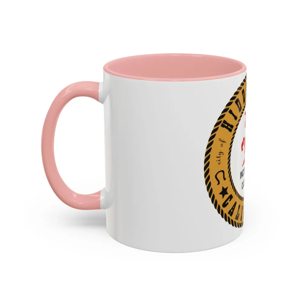 Accent ceramic mugs with a glossy white exterior and a colored interior & handle. Offered in 11 oz (≈330 ml) and 15 oz (≈440 ml), these mugs pair strong visual contrast with everyday durability — lead- and BPA-free.