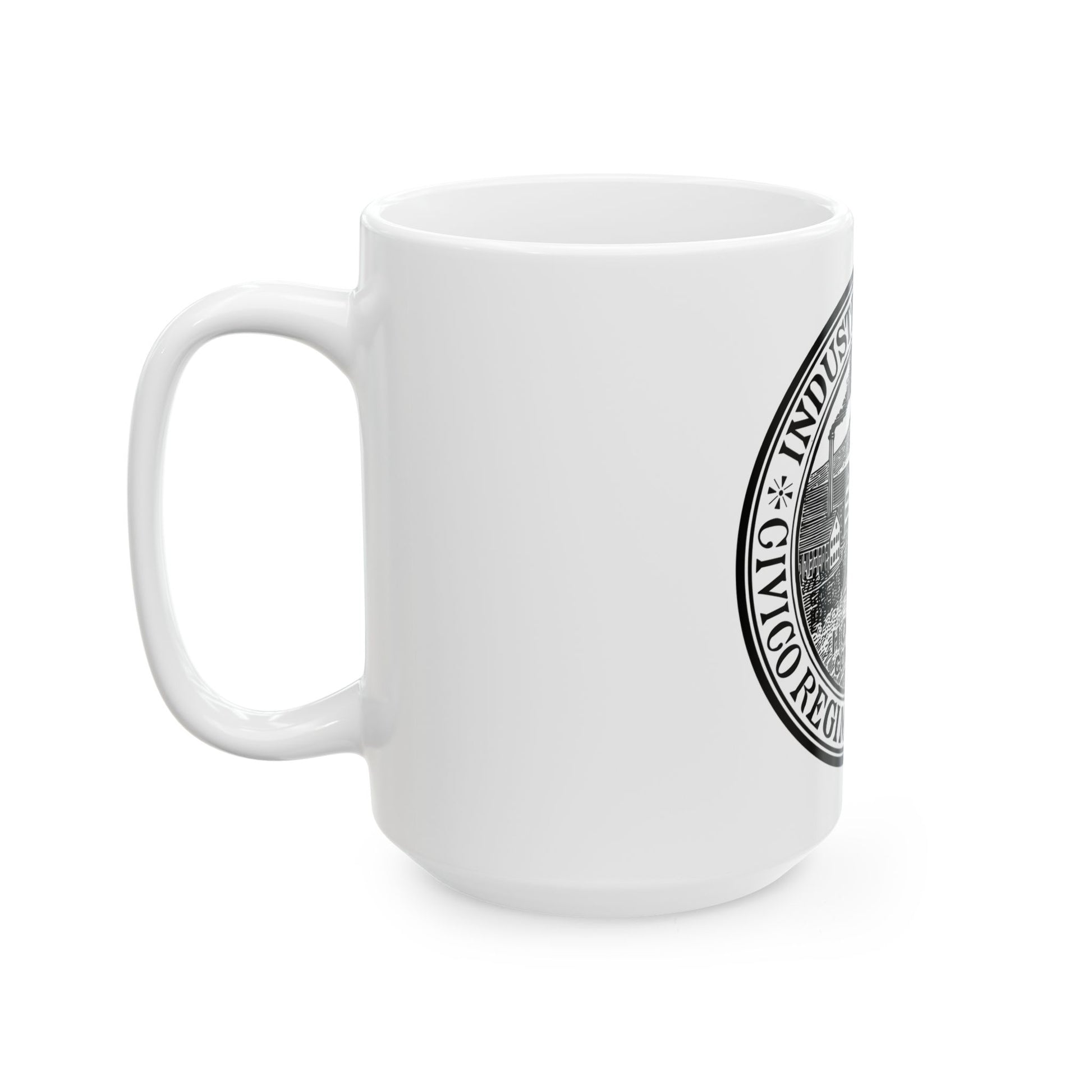 Sturdy white ceramic mugs available in 11 oz (β‰ˆ330 ml) and 15 oz (β‰ˆ440 ml), with a glossy finish and comfortable C-handle β€” microwave and dishwasher safe, and made from lead- and BPA-free materials.