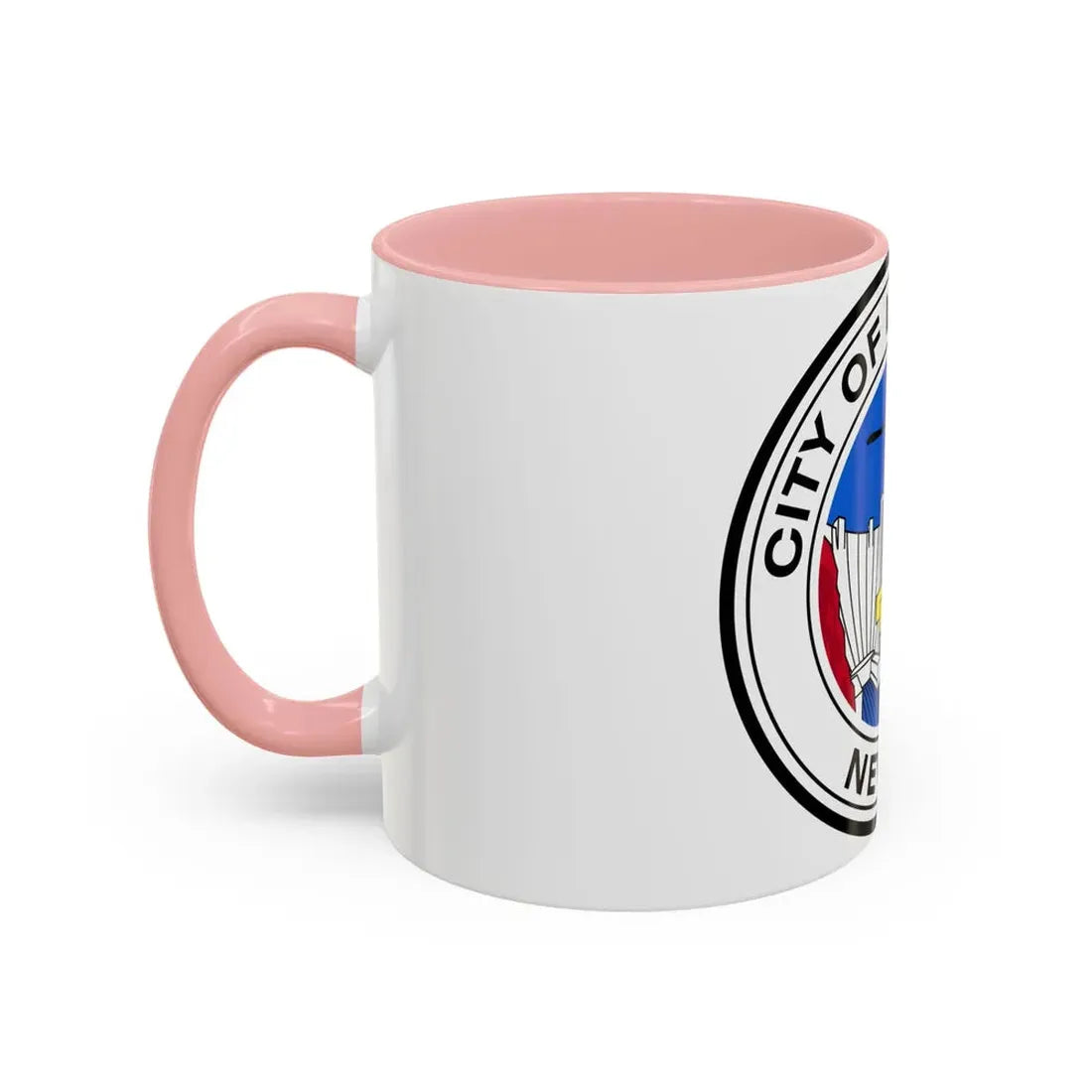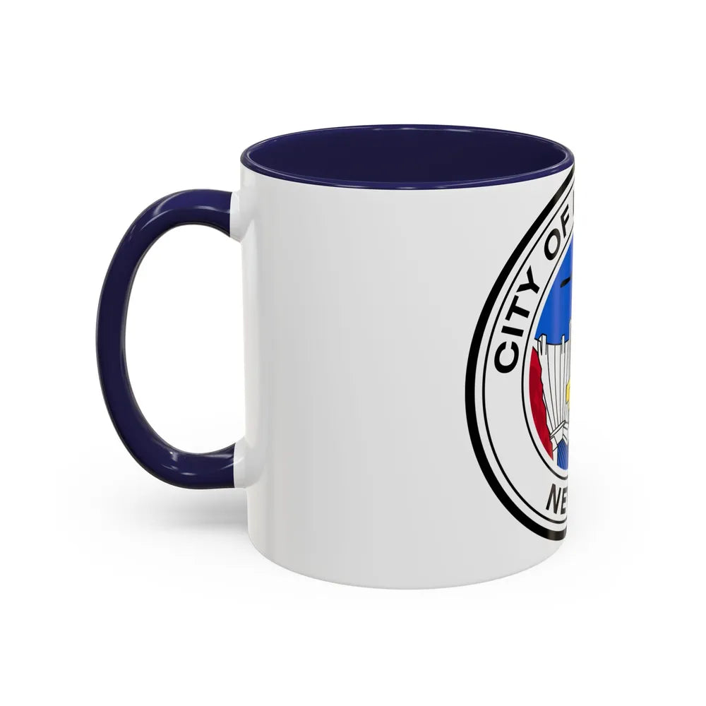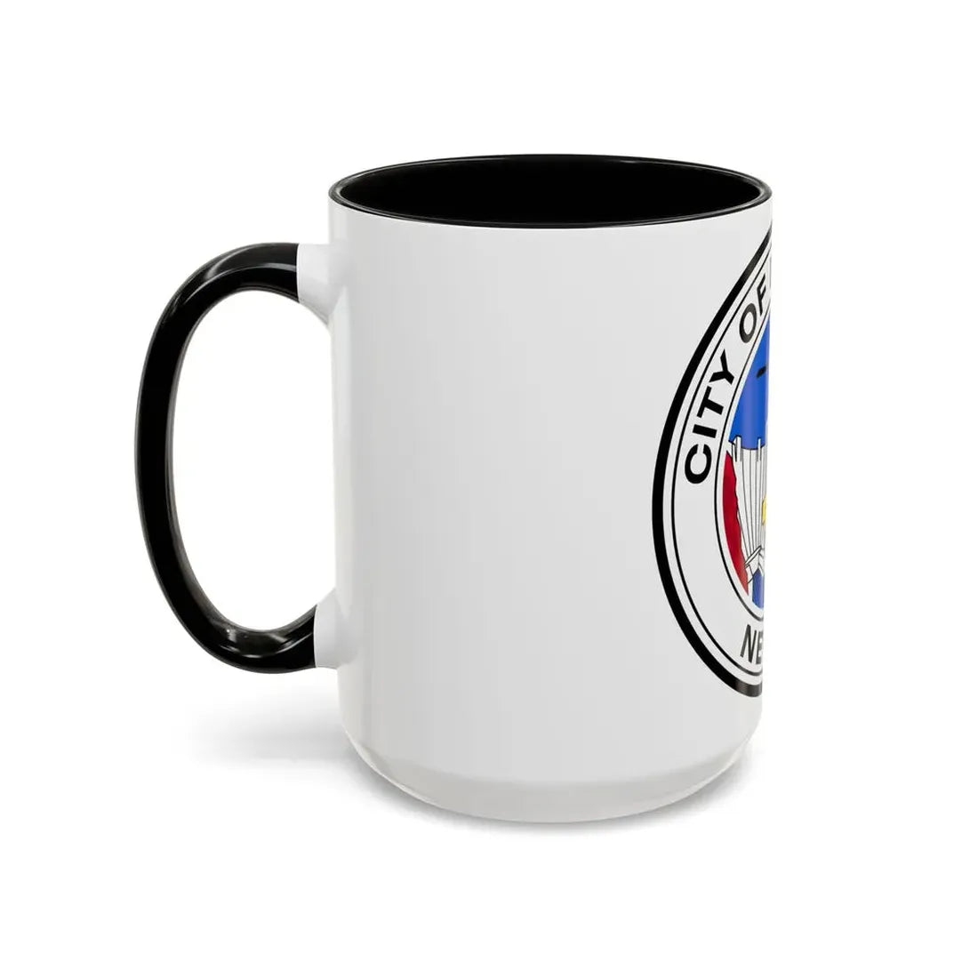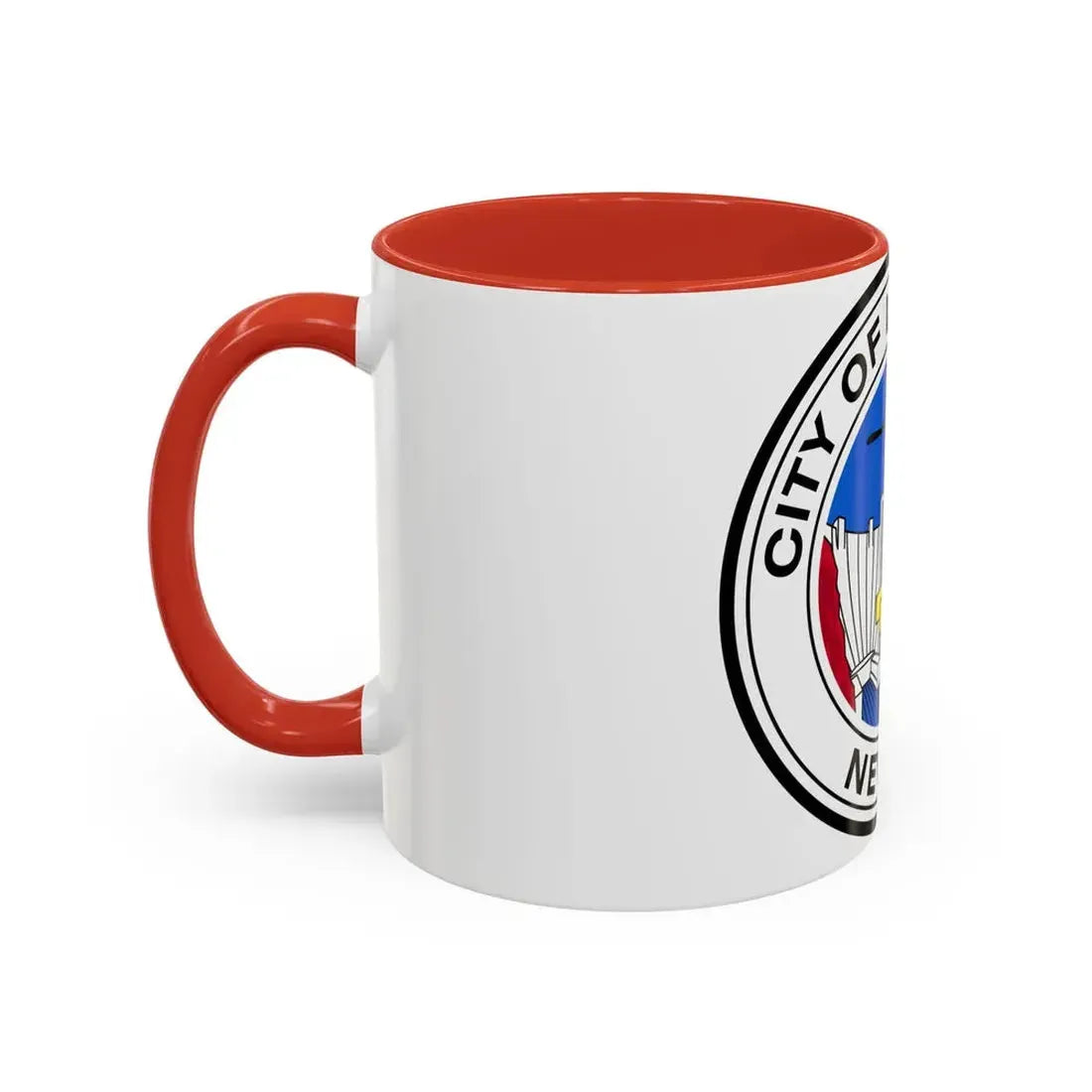 Accent ceramic mugs with a glossy white exterior and a colored interior & handle. Offered in 11 oz (≈330 ml) and 15 oz (≈440 ml), these mugs pair strong visual contrast with everyday durability — lead- and BPA-free.