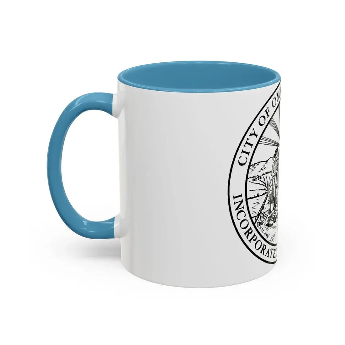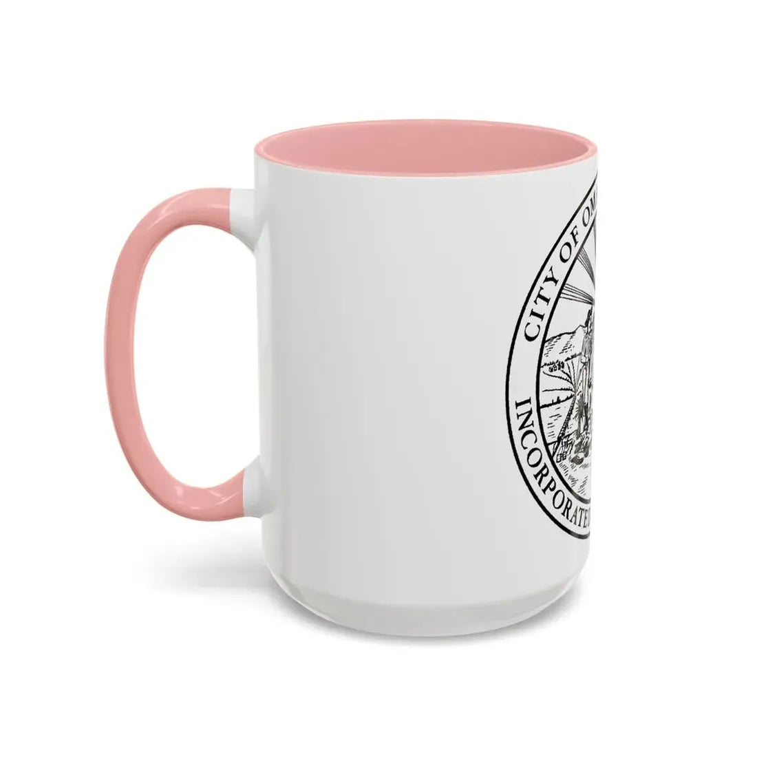 Accent ceramic mugs with a glossy white exterior and a colored interior & handle. Offered in 11 oz (≈330 ml) and 15 oz (≈440 ml), these mugs pair strong visual contrast with everyday durability — lead- and BPA-free.