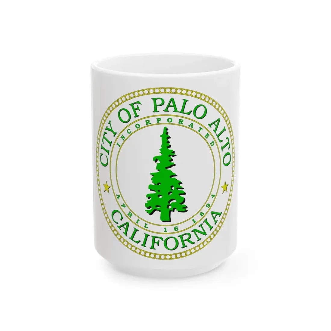 The Seal of Palo Alto, California is the official emblem representing the city. Adopted in 1928, it features a shield divided into four quarters. The top left quarter displays three palm trees, symbolizing the city's pleasant climate and Mediterranean landscape. The top right quarter represents Stanford University, a significant part of Palo Alto's history and culture, with its emblem of an open book with an "S" inscribed within. The bottom left quarter showcases a sailing ship, reflecting the city's maritime past, while the bottom right quarter is divided into four stripes representing the town's founding families: Travers, McCarty, Welch, and Crosby. The shield rests atop a scroll inscribed with the city's motto, "City of Palo Alto," symbolizing the unified nature of the community. The Seal of Palo Alto serves as a visual representation of the city's rich history, cultural connections, and aspirations for the future. It is used on official documents, city seals, and various public displays to reinforce Palo Alto's identity.