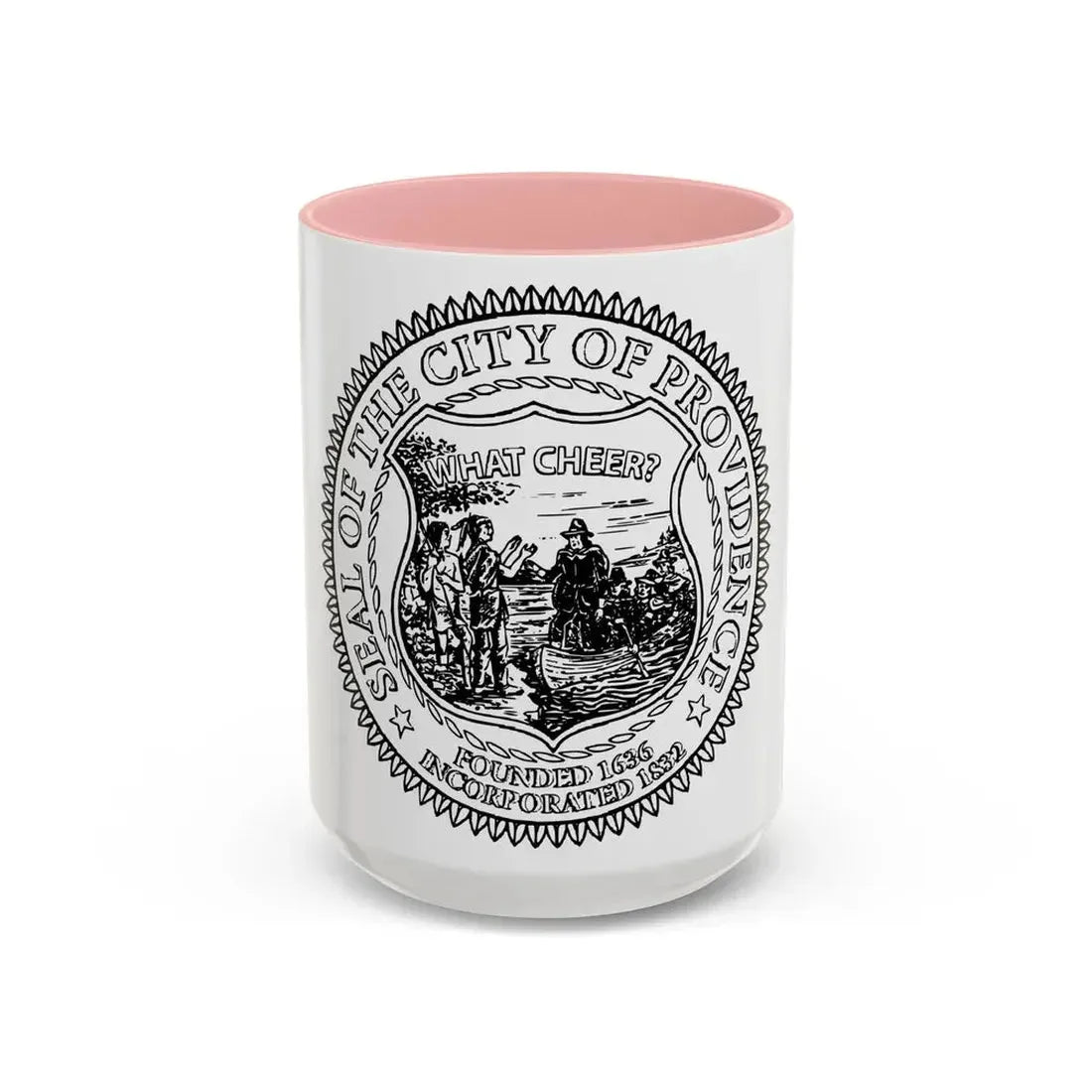 Accent ceramic mugs with a glossy white exterior and a colored interior & handle. Offered in 11 oz (≈330 ml) and 15 oz (≈440 ml), these mugs pair strong visual contrast with everyday durability — lead- and BPA-free.