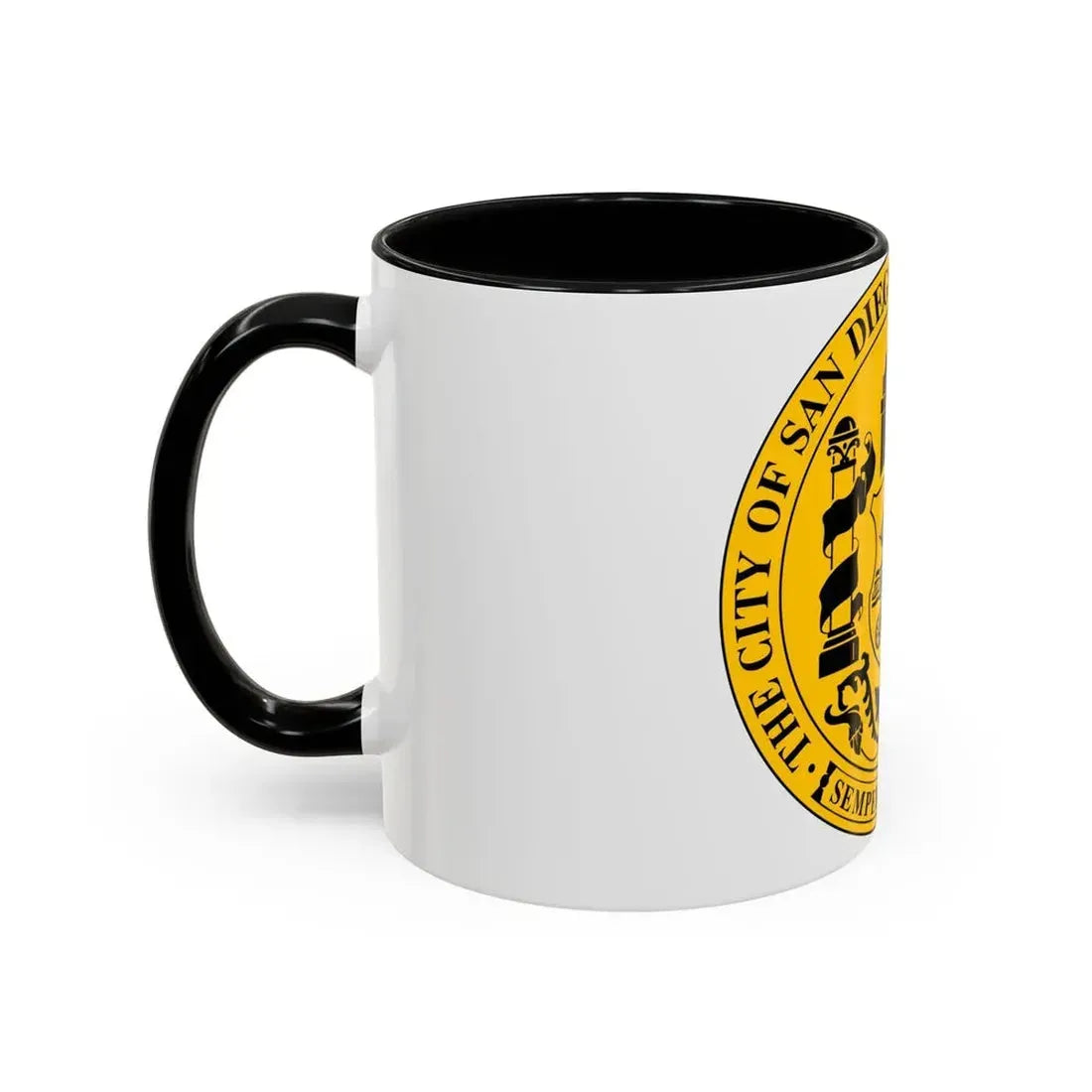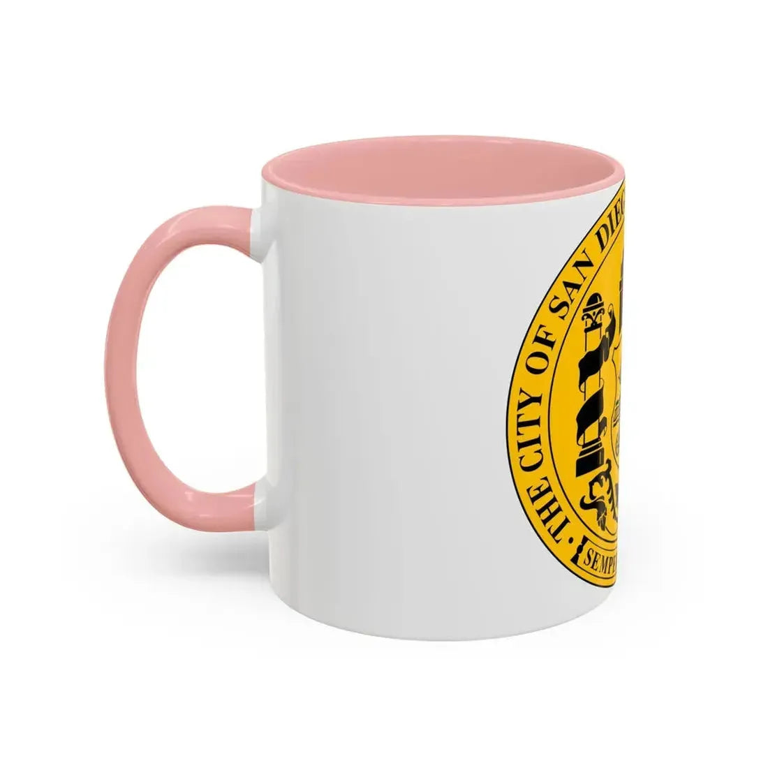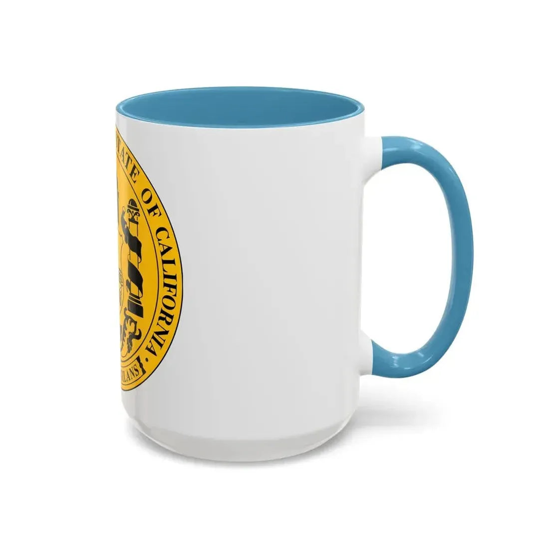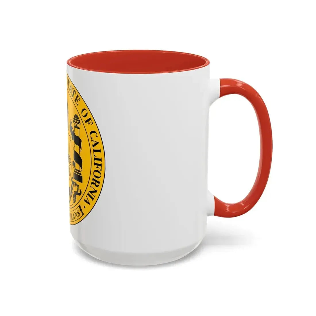 Accent ceramic mugs with a glossy white exterior and a colored interior & handle. Offered in 11 oz (≈330 ml) and 15 oz (≈440 ml), these mugs pair strong visual contrast with everyday durability — lead- and BPA-free.