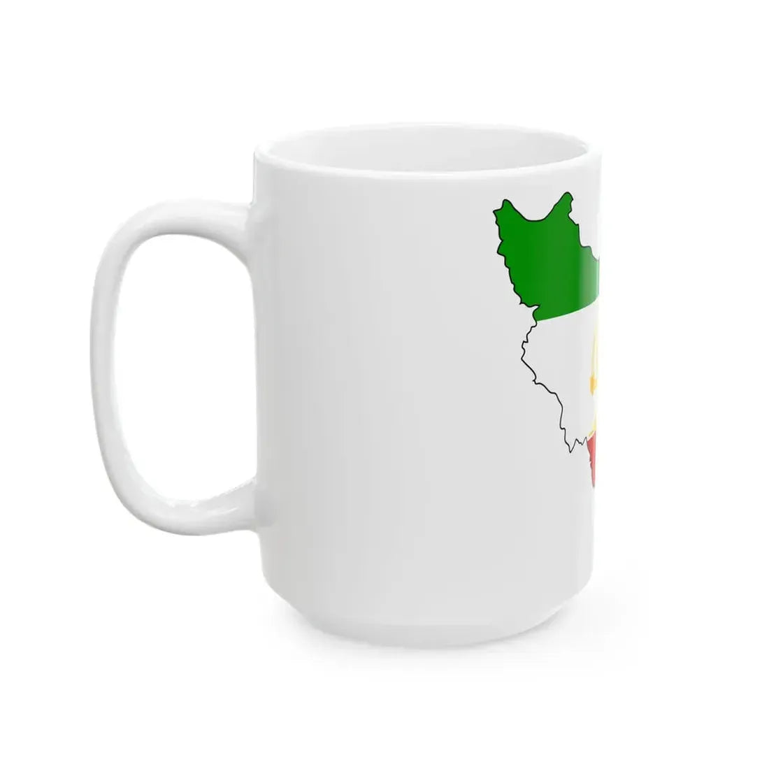 Shir-o-Khorshid Flag of Iran in map (Iran) White Coffee Mug
