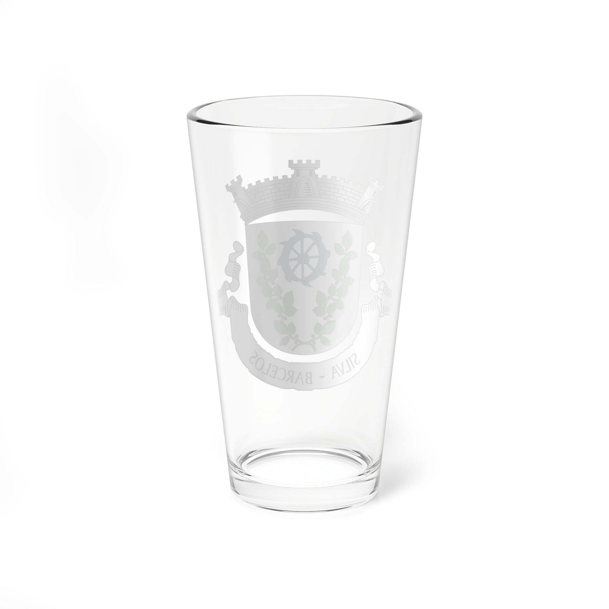 This pint glass showcases the heraldic artistry of the Silva, a civil parish within the municipality of Barcelos, Portugal. The design prominently features the official coat of arms, a powerful visual representation of the area's rich history and natural heritage.