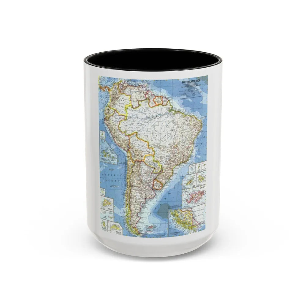 Accent ceramic mugs with a glossy white exterior and a colored interior & handle. Offered in 11 oz (≈330 ml) and 15 oz (≈440 ml), these mugs pair strong visual contrast with everyday durability — lead- and BPA-free.