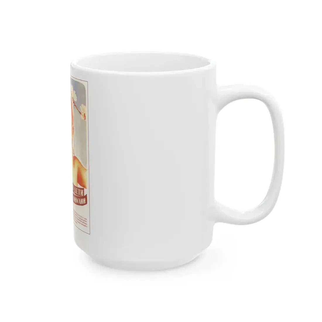 Sturdy white ceramic mugs available in 11 oz (≈330 ml) and 15 oz (≈440 ml), with a glossy finish and comfortable C-handle — microwave and dishwasher safe, and made from lead- and BPA-free materials.