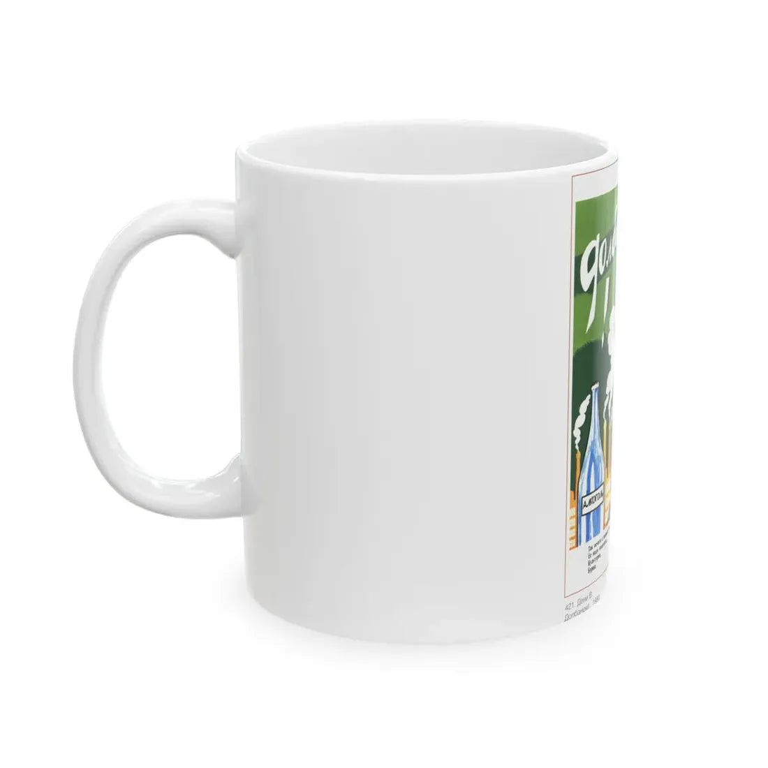 Sturdy white ceramic mugs available in 11 oz (≈330 ml) and 15 oz (≈440 ml), with a glossy finish and comfortable C-handle — microwave and dishwasher safe, and made from lead- and BPA-free materials.