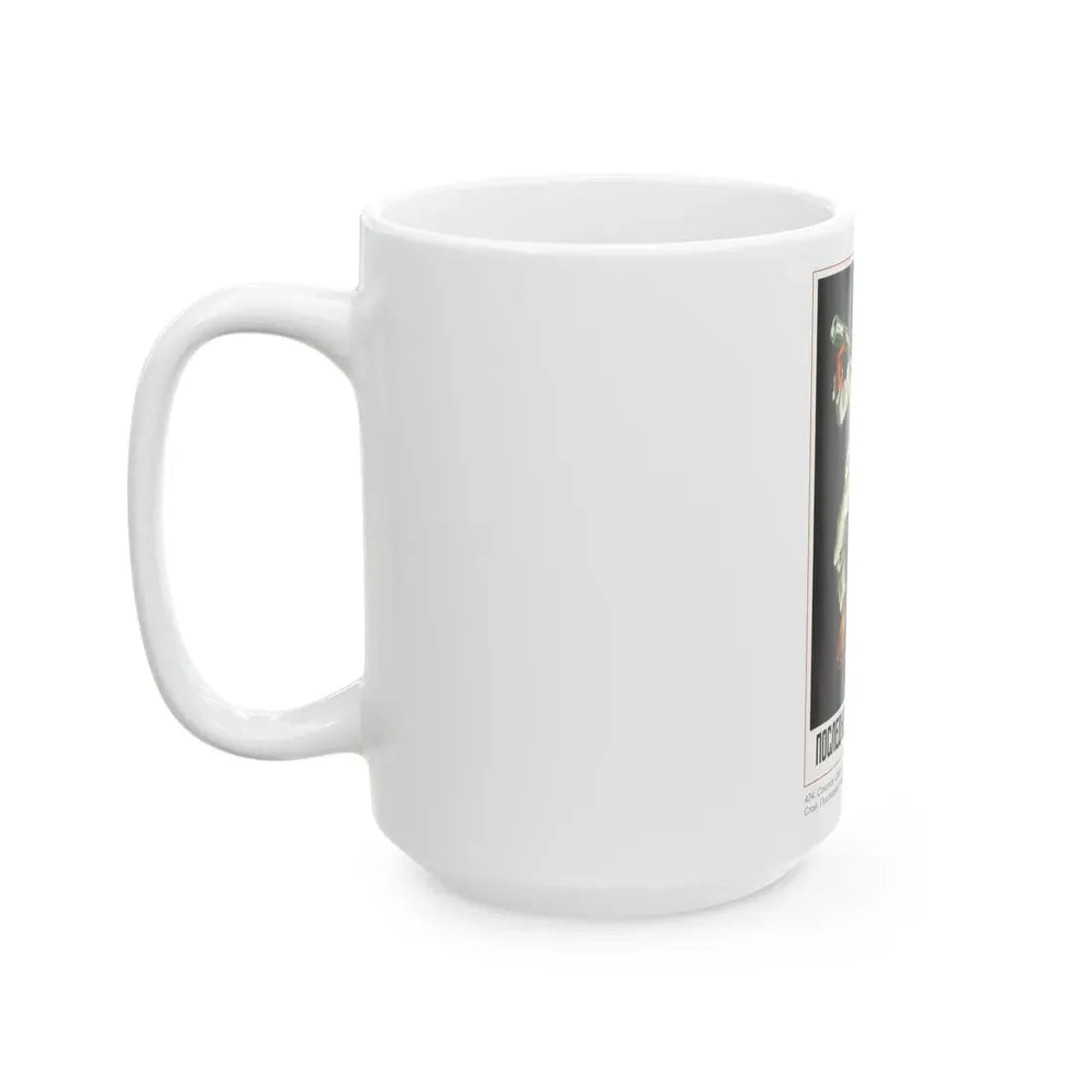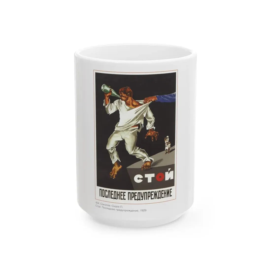 Sturdy white ceramic mugs available in 11 oz (≈330 ml) and 15 oz (≈440 ml), with a glossy finish and comfortable C-handle — microwave and dishwasher safe, and made from lead- and BPA-free materials.