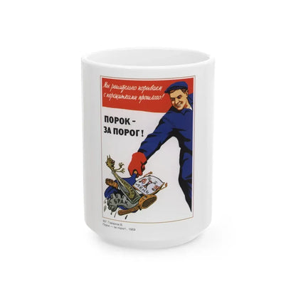 Sturdy white ceramic mugs available in 11 oz (≈330 ml) and 15 oz (≈440 ml), with a glossy finish and comfortable C-handle — microwave and dishwasher safe, and made from lead- and BPA-free materials.