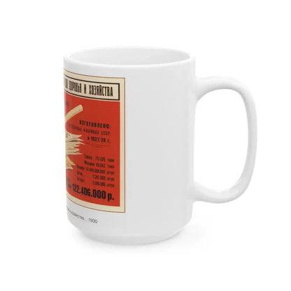 Sturdy white ceramic mugs available in 11 oz (≈330 ml) and 15 oz (≈440 ml), with a glossy finish and comfortable C-handle — microwave and dishwasher safe, and made from lead- and BPA-free materials.