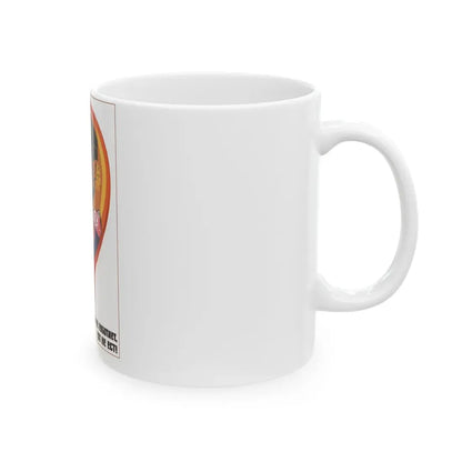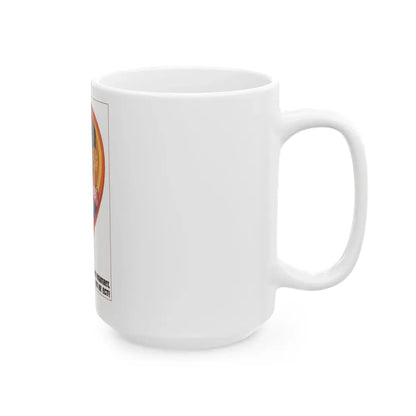 Sturdy white ceramic mugs available in 11 oz (≈330 ml) and 15 oz (≈440 ml), with a glossy finish and comfortable C-handle — microwave and dishwasher safe, and made from lead- and BPA-free materials.