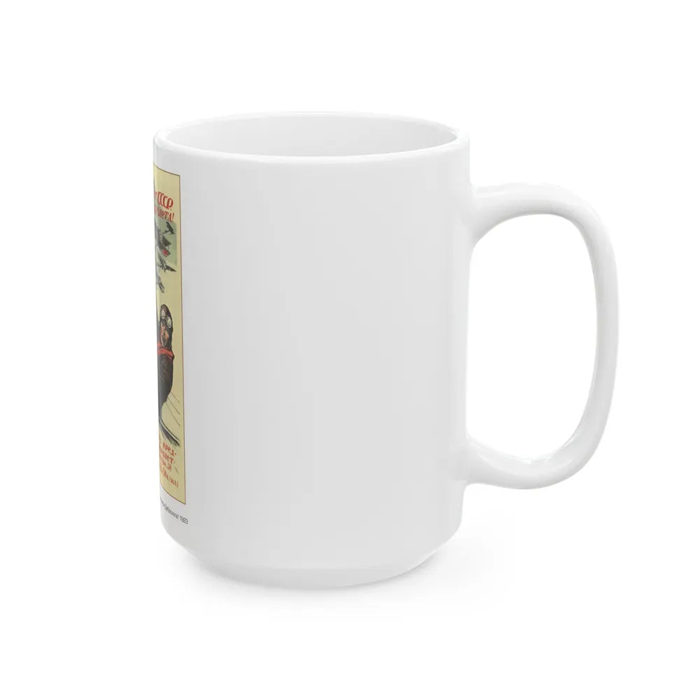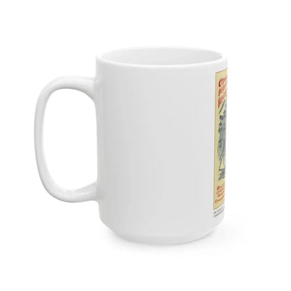 Sturdy white ceramic mugs available in 11 oz (≈330 ml) and 15 oz (≈440 ml), with a glossy finish and comfortable C-handle — microwave and dishwasher safe, and made from lead- and BPA-free materials.