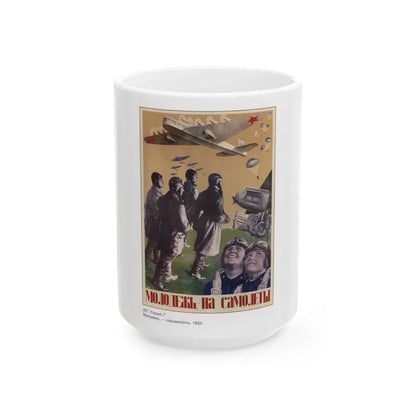 Sturdy white ceramic mugs available in 11 oz (≈330 ml) and 15 oz (≈440 ml), with a glossy finish and comfortable C-handle — microwave and dishwasher safe, and made from lead- and BPA-free materials.