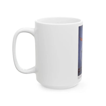 Sturdy white ceramic mugs available in 11 oz (≈330 ml) and 15 oz (≈440 ml), with a glossy finish and comfortable C-handle — microwave and dishwasher safe, and made from lead- and BPA-free materials.