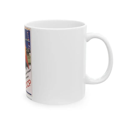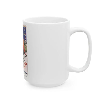 Sturdy white ceramic mugs available in 11 oz (≈330 ml) and 15 oz (≈440 ml), with a glossy finish and comfortable C-handle — microwave and dishwasher safe, and made from lead- and BPA-free materials.