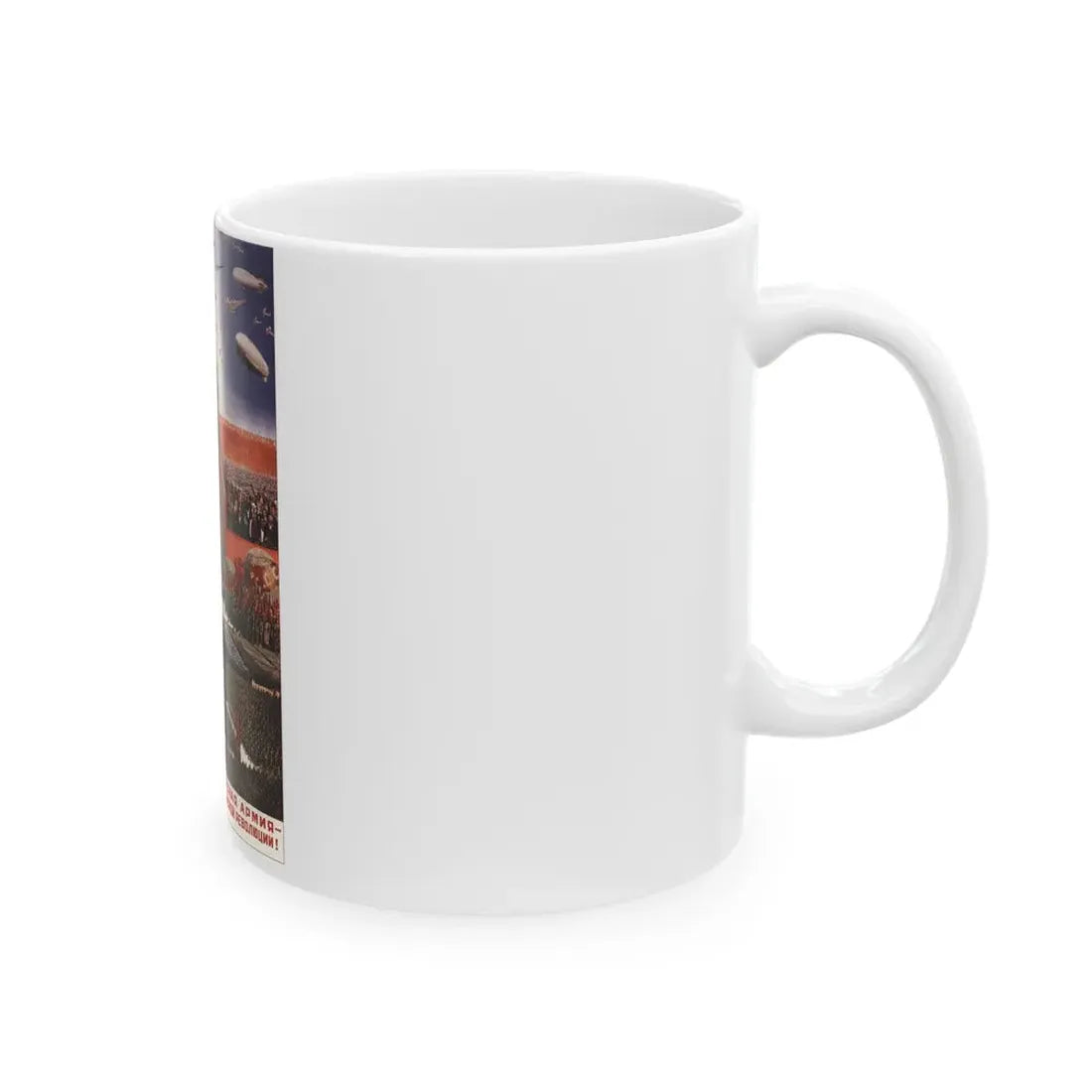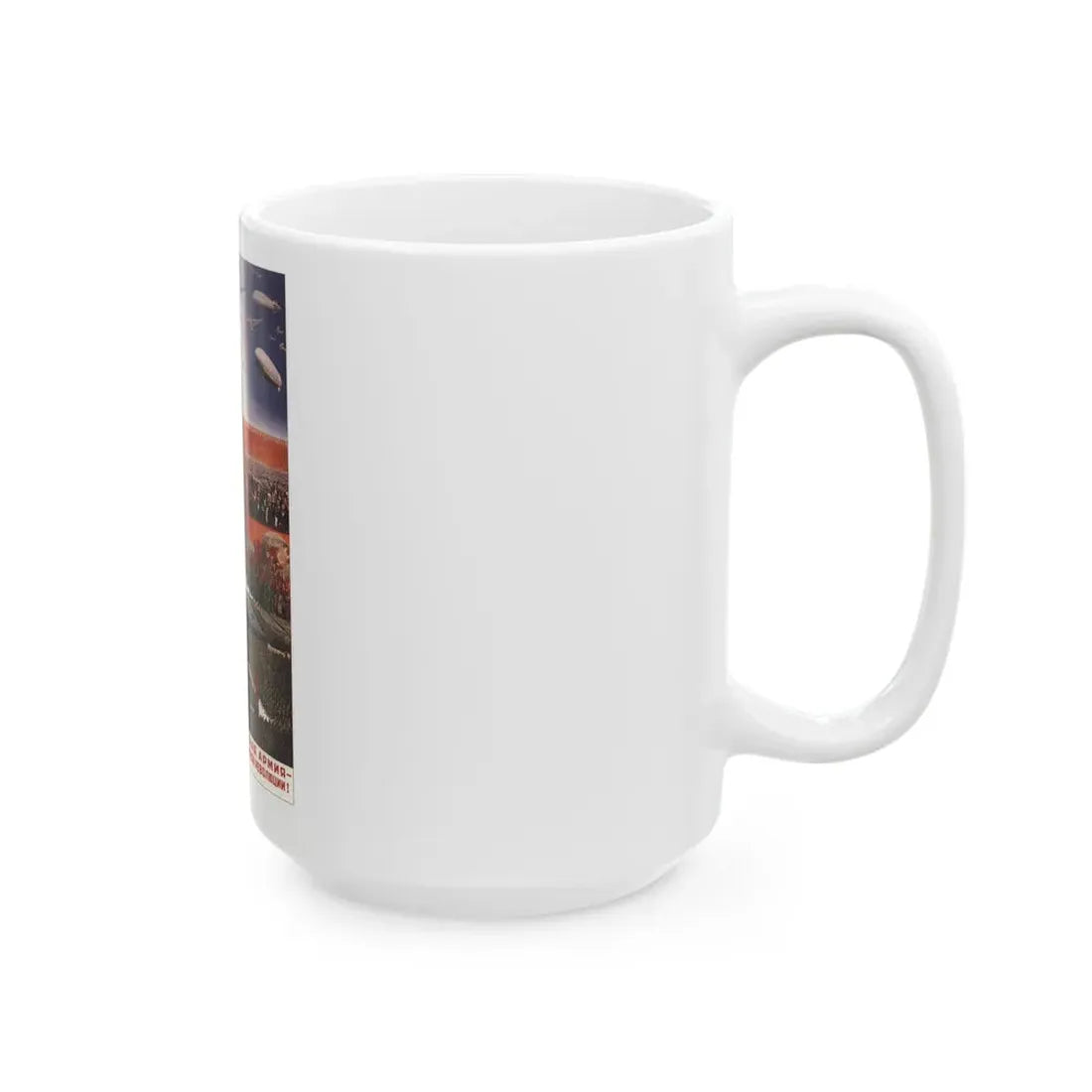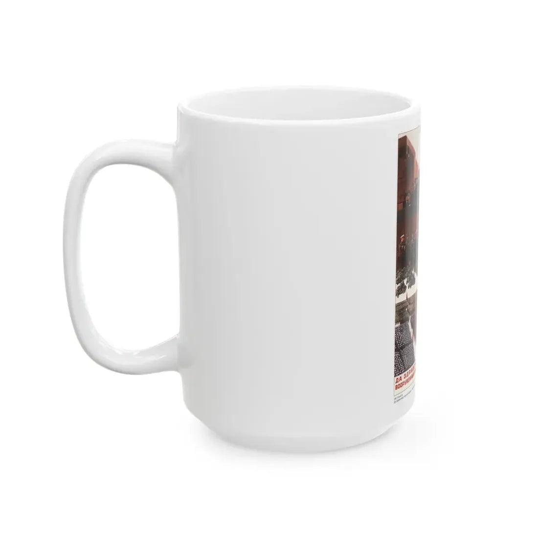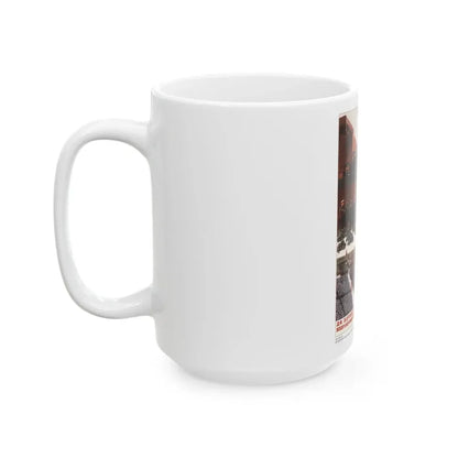 Sturdy white ceramic mugs available in 11 oz (≈330 ml) and 15 oz (≈440 ml), with a glossy finish and comfortable C-handle — microwave and dishwasher safe, and made from lead- and BPA-free materials.