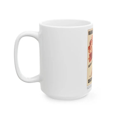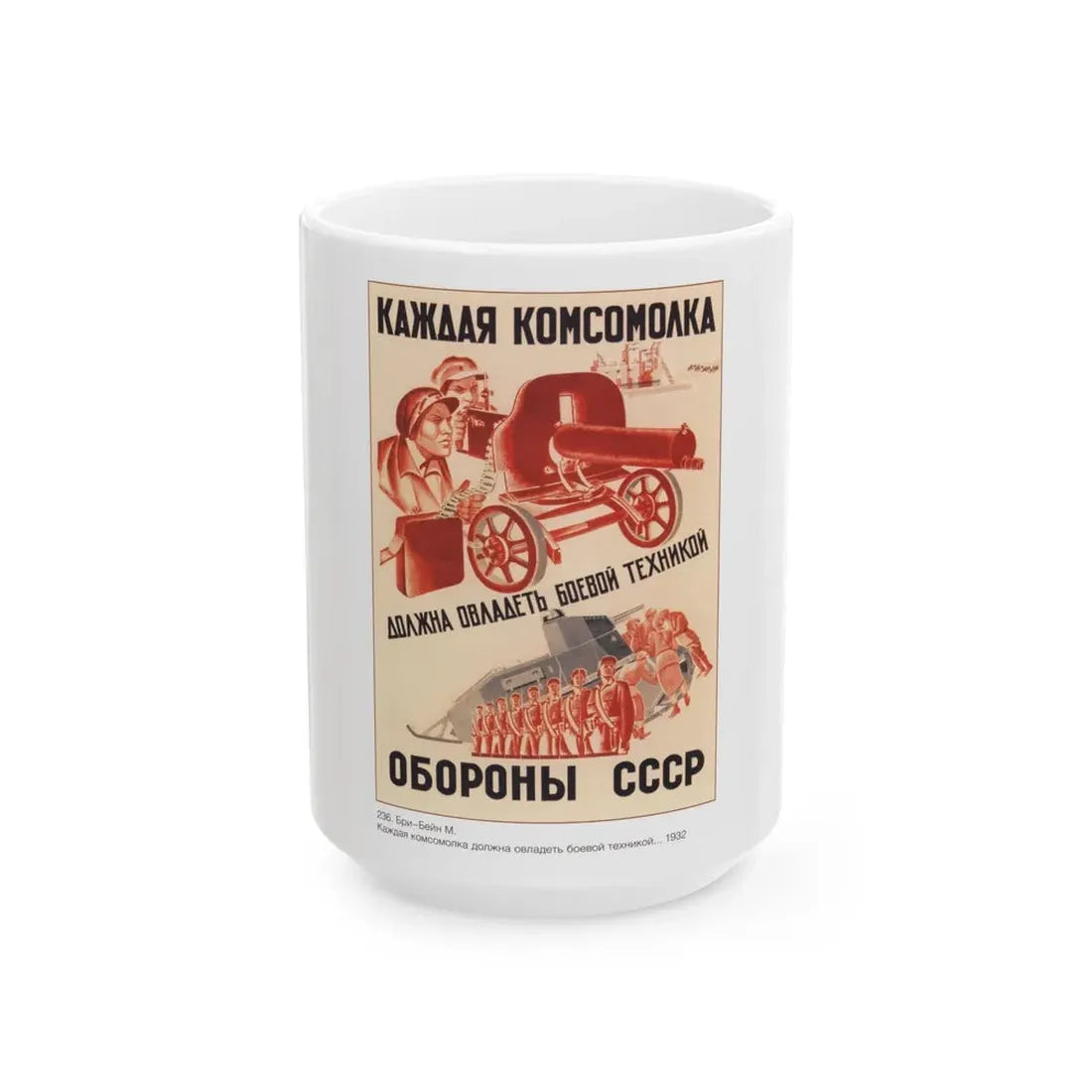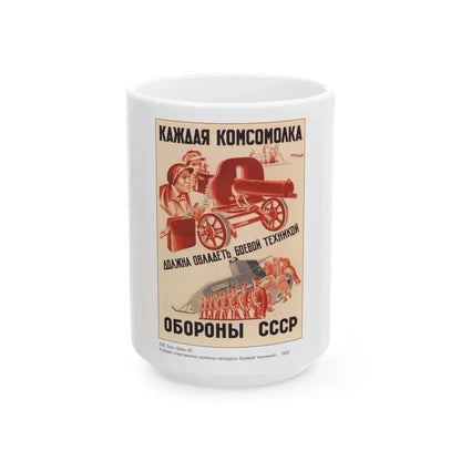 Sturdy white ceramic mugs available in 11 oz (≈330 ml) and 15 oz (≈440 ml), with a glossy finish and comfortable C-handle — microwave and dishwasher safe, and made from lead- and BPA-free materials.