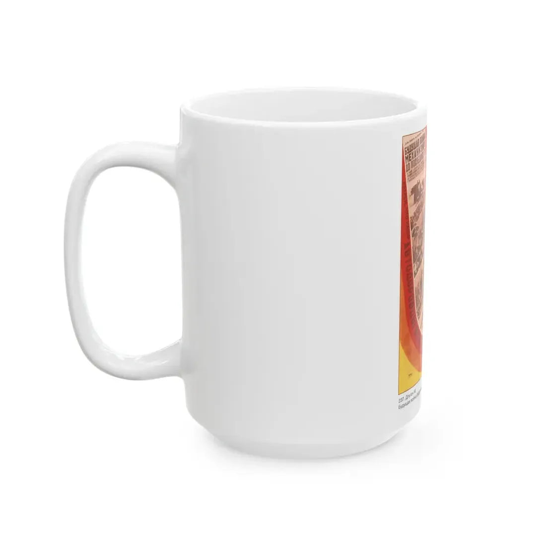 Sturdy white ceramic mugs available in 11 oz (≈330 ml) and 15 oz (≈440 ml), with a glossy finish and comfortable C-handle — microwave and dishwasher safe, and made from lead- and BPA-free materials.