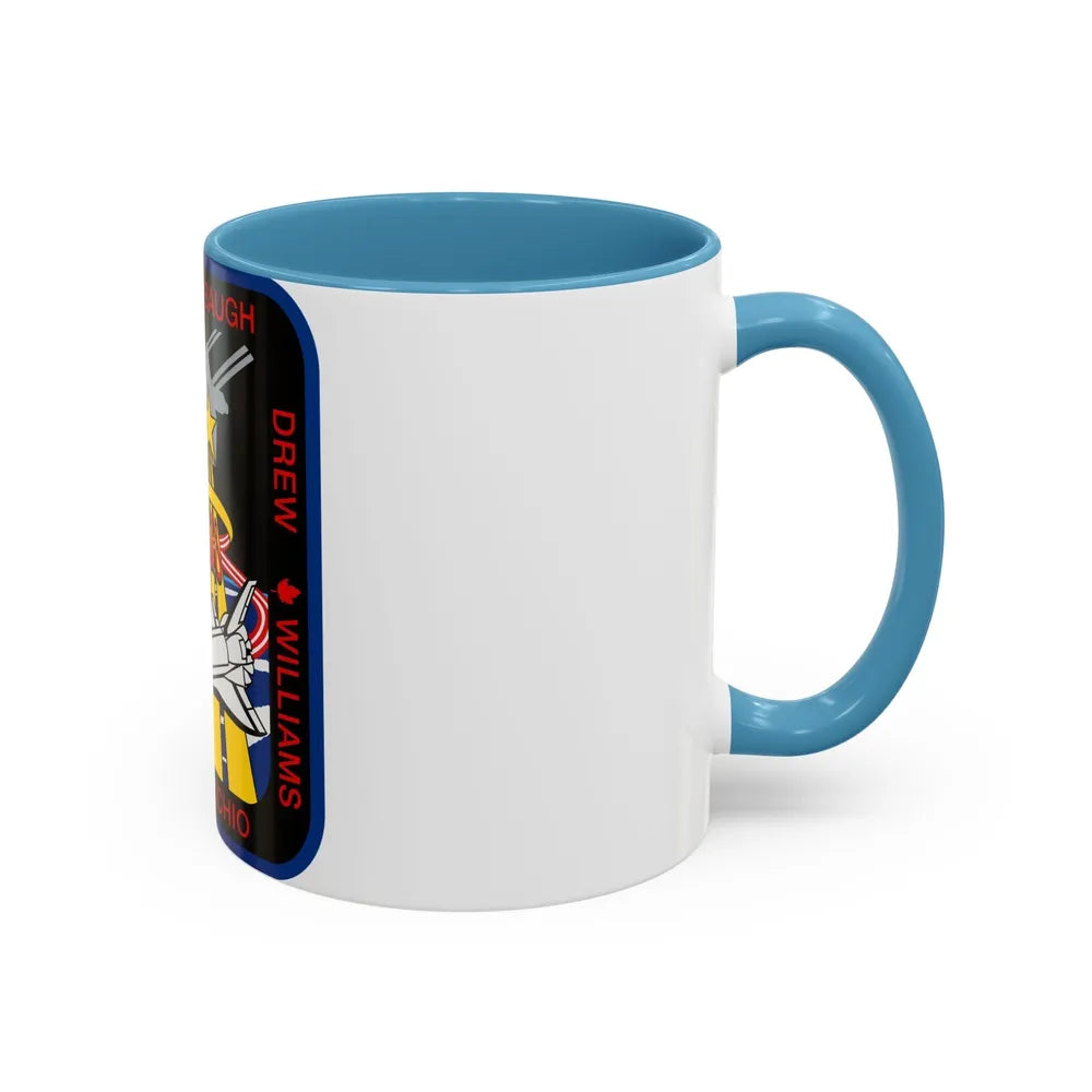 Accent ceramic mugs with a glossy white exterior and a colored interior & handle. Offered in 11 oz (≈330 ml) and 15 oz (≈440 ml), these mugs pair strong visual contrast with everyday durability — lead- and BPA-free.