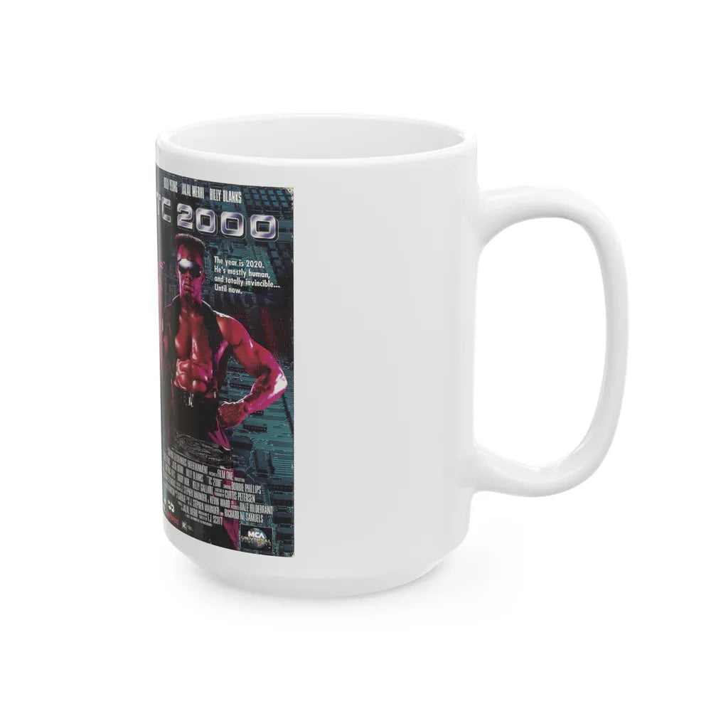 Sturdy white ceramic mugs available in 11 oz (≈330 ml) and 15 oz (≈440 ml), with a glossy finish and comfortable C-handle — microwave and dishwasher safe, and made from lead- and BPA-free materials.