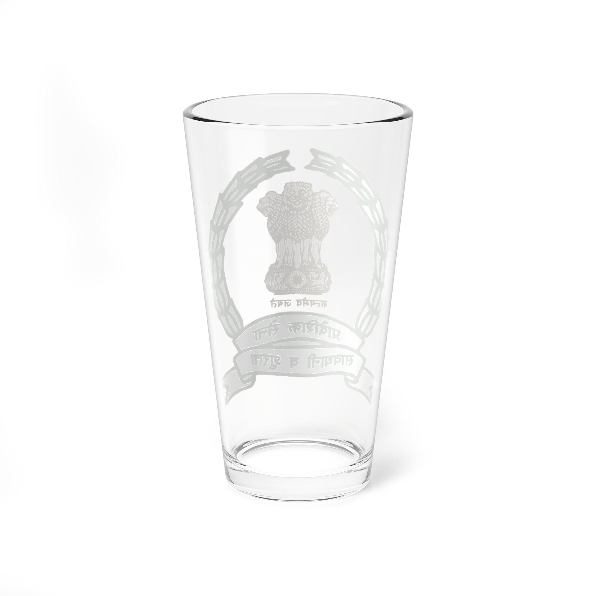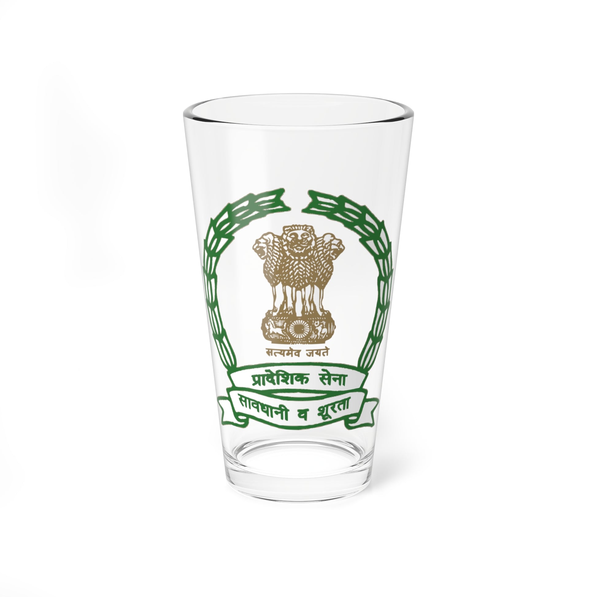 This pint glass showcases the distinctive insignia of the Territorial Army (TA) of India, artfully adapted from the nation's Coat of Arms.