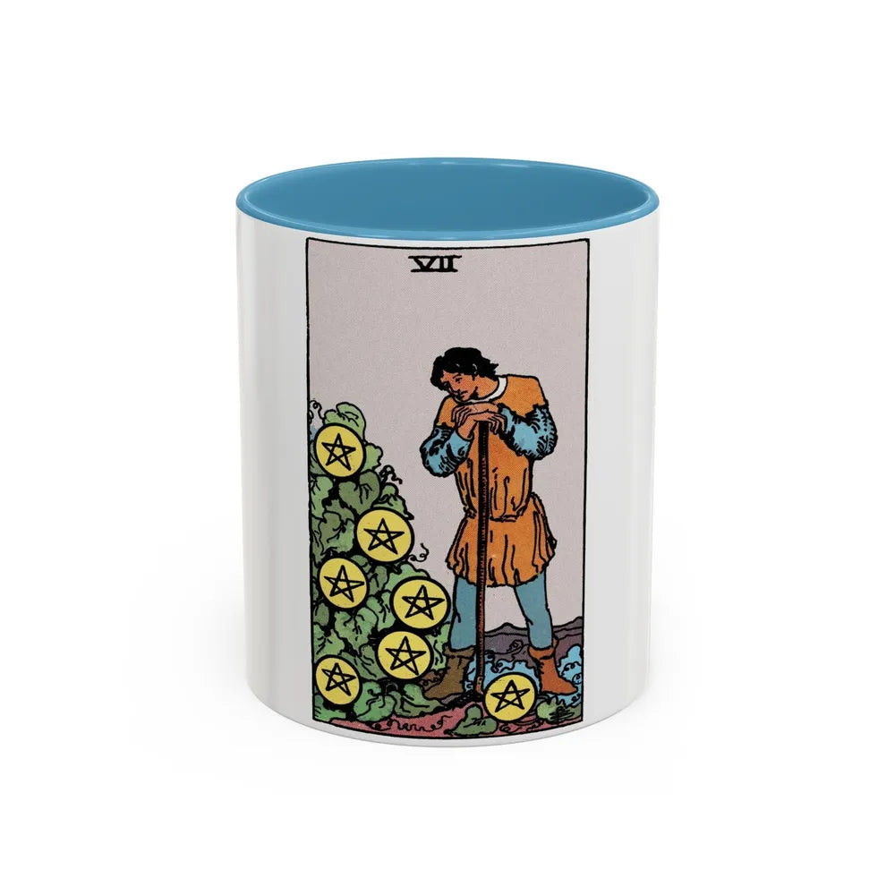 The 7 of Pentacles (Tarot Card) Accent Coffee Mug