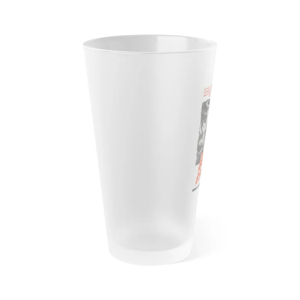 Frosted pint glass (16 oz / ≈0.47 L) with a soft matte finish and semi-translucent, one-sided print. Tough enough for bar and restaurant use, dishwasher safe, and BPA-free — a modern take on classic pintware.