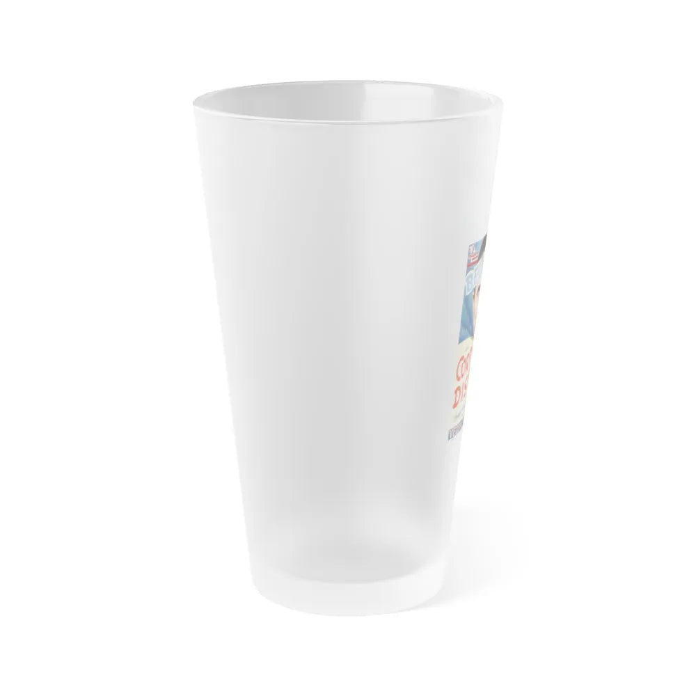 Frosted pint glass (16 oz / ≈0.47 L) with a soft matte finish and semi-translucent, one-sided print. Tough enough for bar and restaurant use, dishwasher safe, and BPA-free — a modern take on classic pintware.