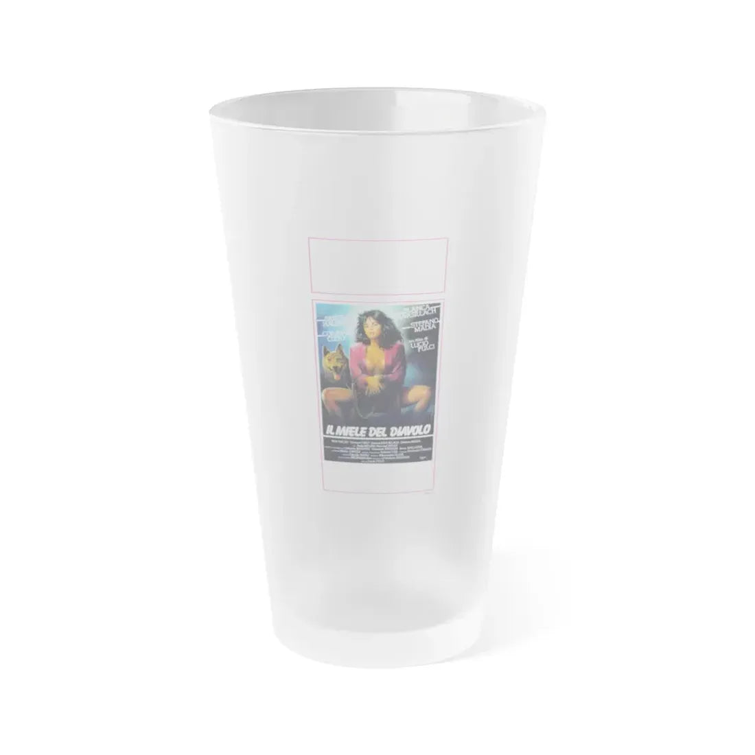 Frosted pint glass (16 oz / ≈0.47 L) with a soft matte finish and semi-translucent, one-sided print. Tough enough for bar and restaurant use, dishwasher safe, and BPA-free — a modern take on classic pintware.