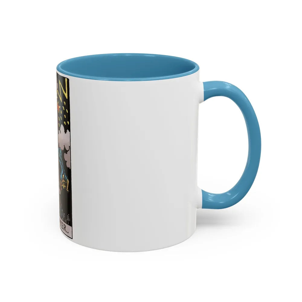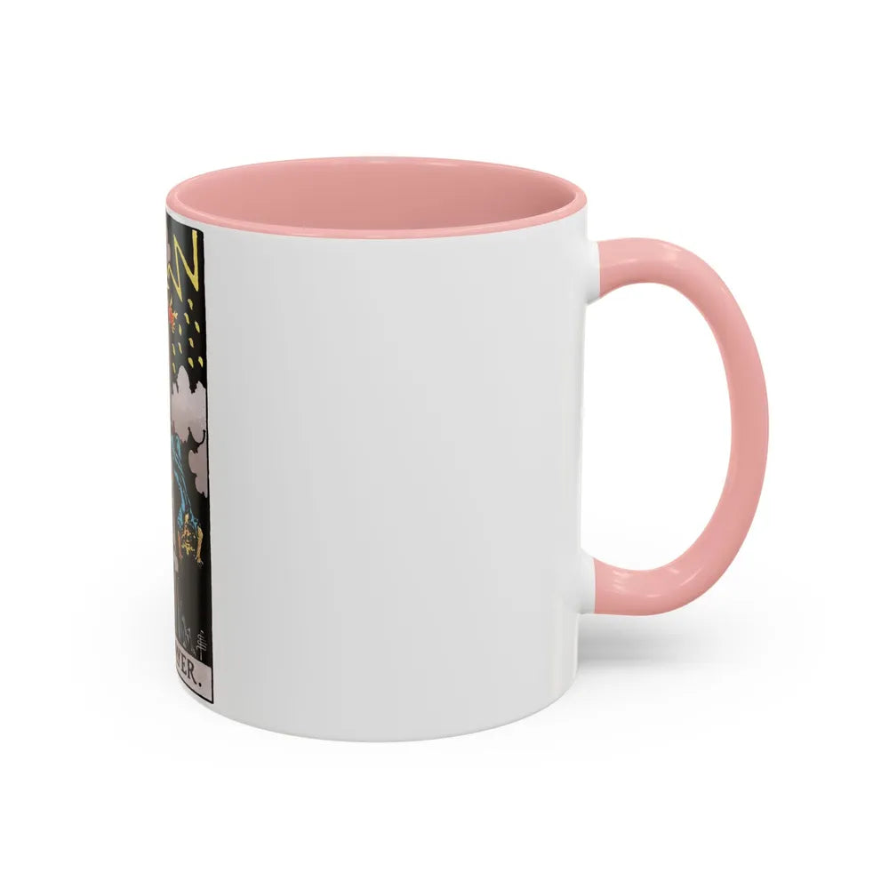 Accent ceramic mugs with a glossy white exterior and a colored interior & handle. Offered in 11 oz (≈330 ml) and 15 oz (≈440 ml), these mugs pair strong visual contrast with everyday durability — lead- and BPA-free.