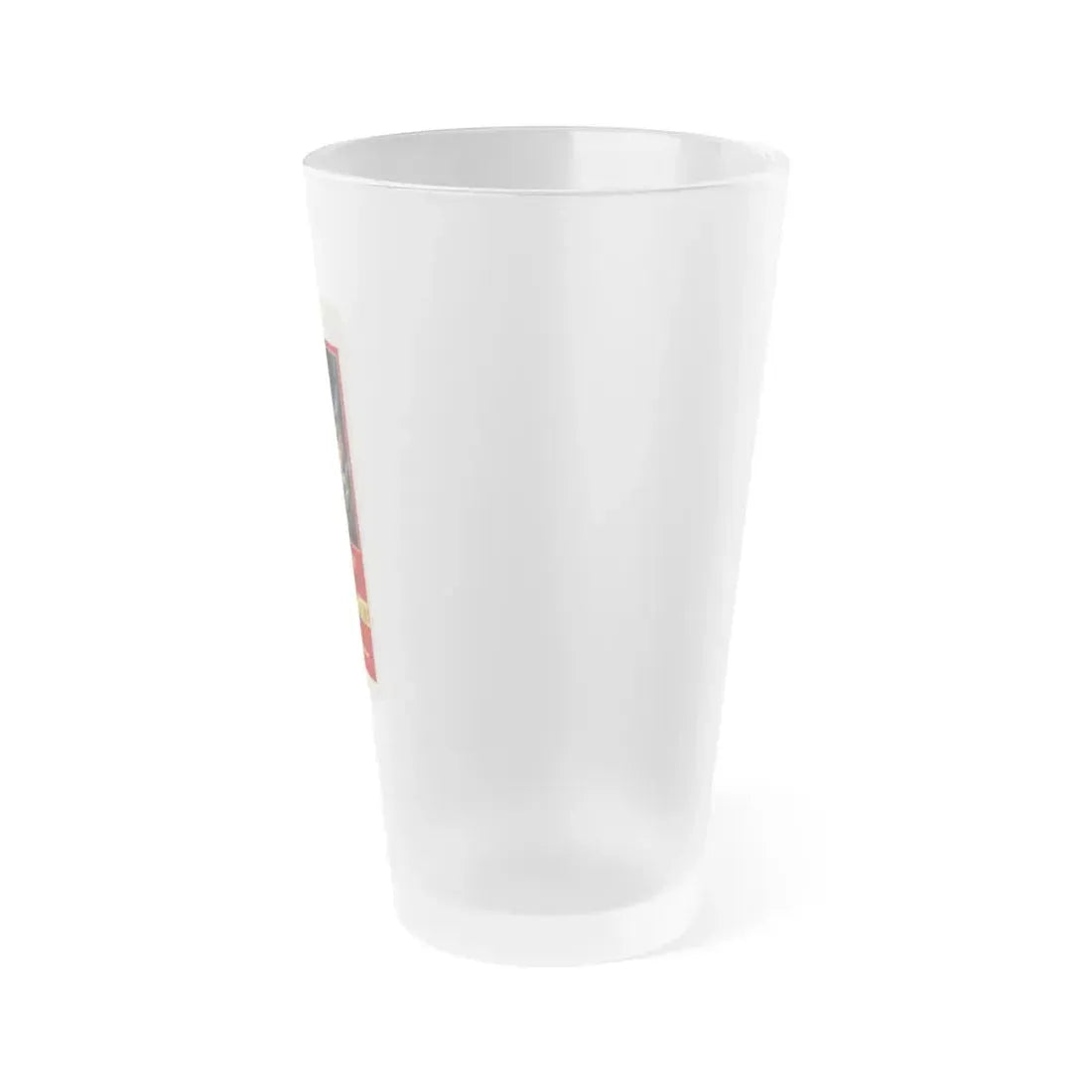 Frosted pint glass (16 oz / ≈0.47 L) with a soft matte finish and semi-translucent, one-sided print. Tough enough for bar and restaurant use, dishwasher safe, and BPA-free — a modern take on classic pintware.
