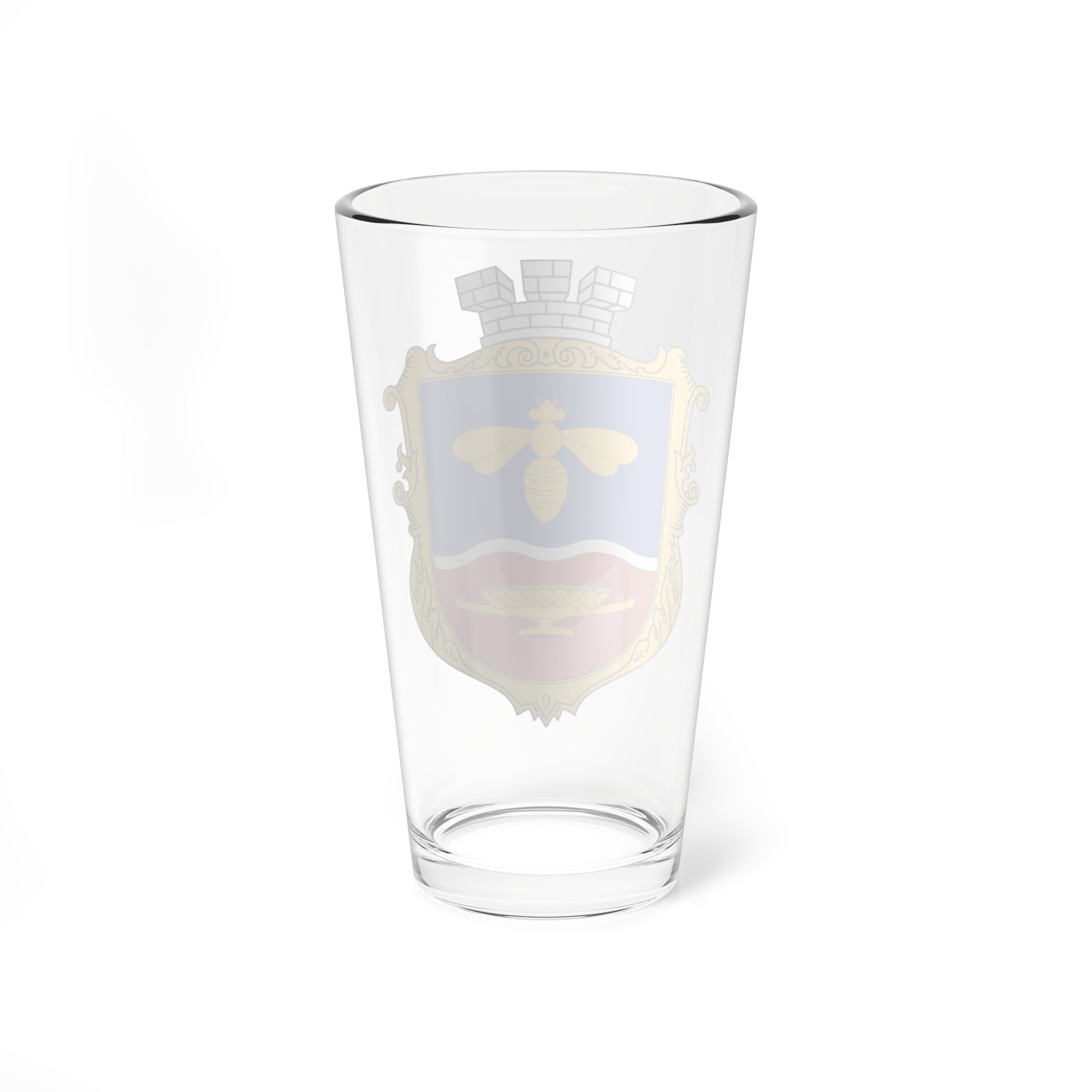 This pint glass showcases the heraldic beauty of Simferopol, a city steeped in history. The central visual element is the city's coat of arms, a symbol rich with meaning and tradition.