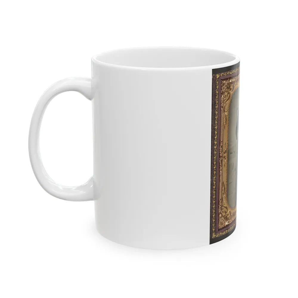 Unidentified Sailor In Union Uniform At American Flag-Draped Table In Front Of Painted Backdrop Showing Naval Ship (U.S. Civil War) White Coffee Mug
