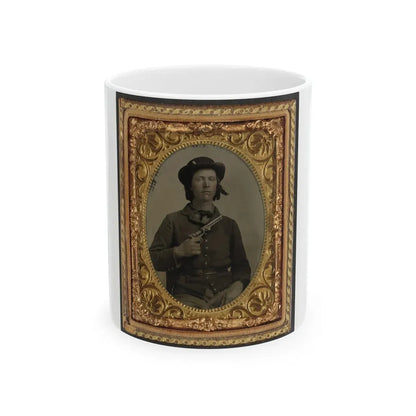 Unidentified Soldier In Confederate Uniform With Revolver(2) (U.S. Civil War) White Coffee Mug