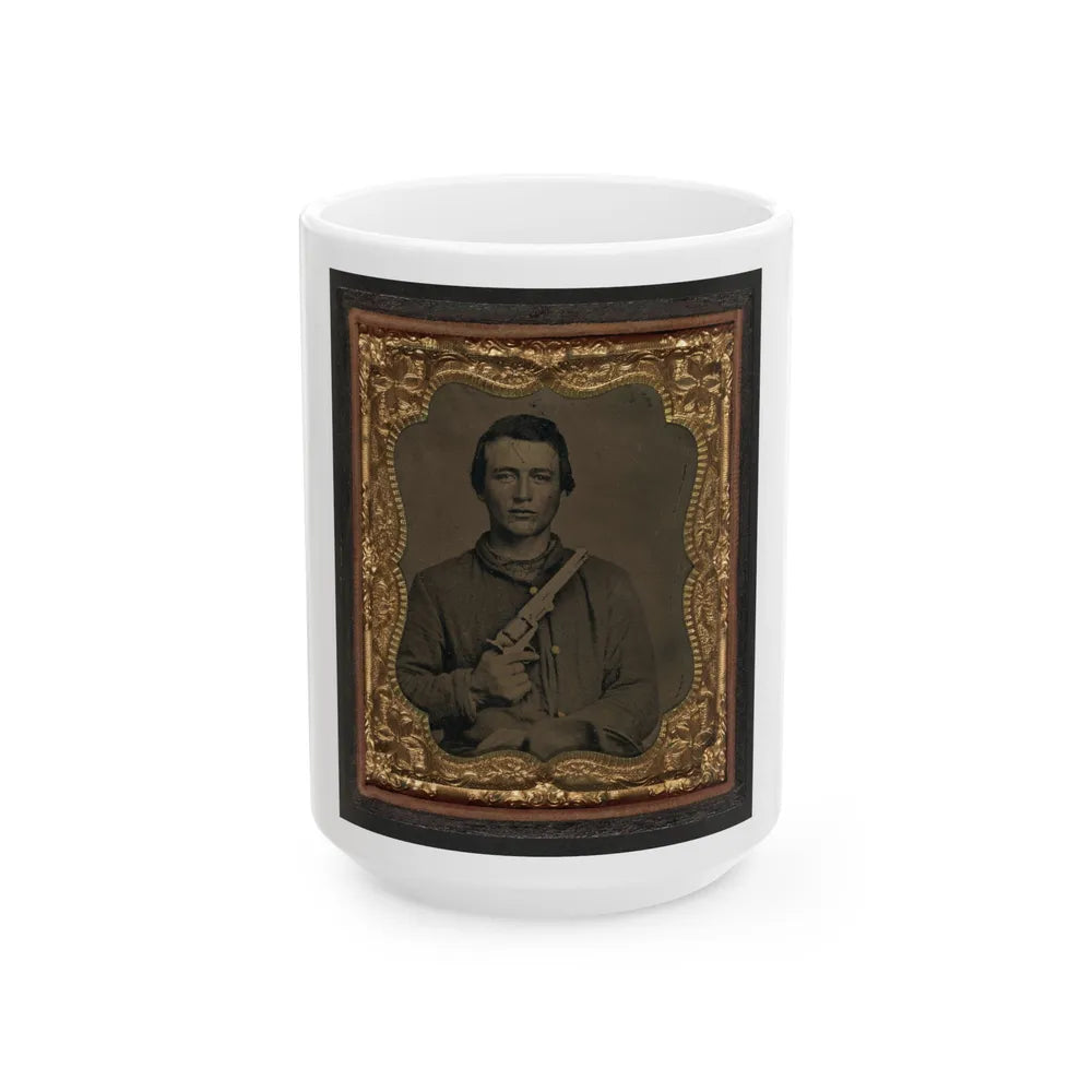 Unidentified Soldier In Union Uniform Holding Colt Revolver To Chest (U.S. Civil War) White Coffee Mug