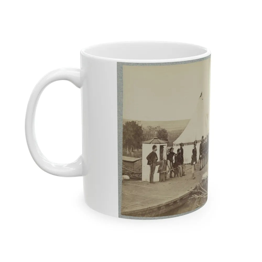 Union Soldiers Lined Up In Two Rows In Front Of Tents (U.S. Civil War) White Coffee Mug