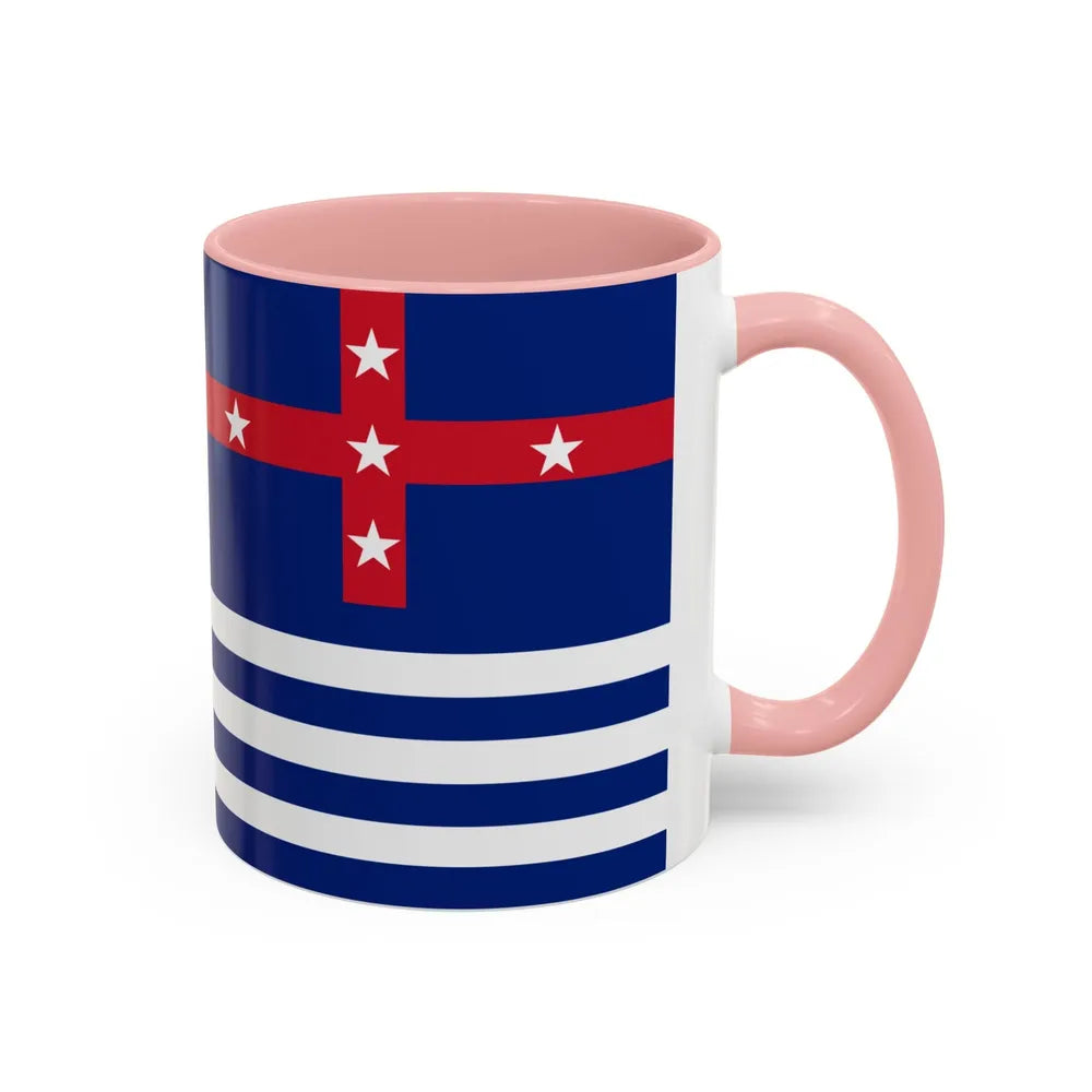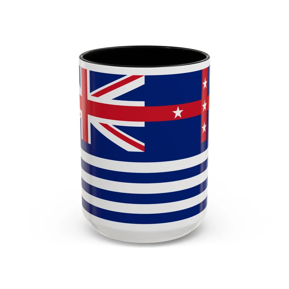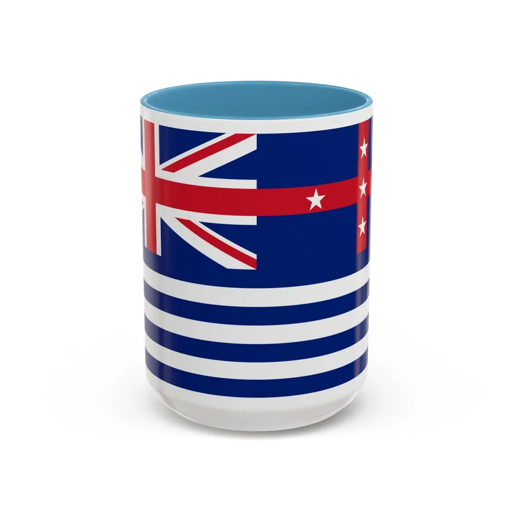 Accent ceramic mugs with a glossy white exterior and a colored interior & handle. Offered in 11 oz (≈330 ml) and 15 oz (≈440 ml), these mugs pair strong visual contrast with everyday durability — lead- and BPA-free.